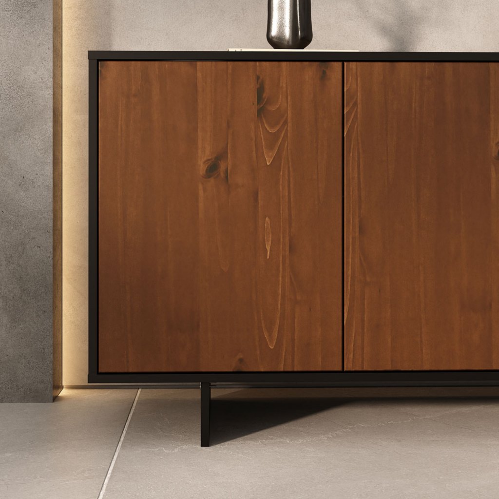 Aparador de Sala Buffet Preto Alto Madeira 135 cm Prateleiras Reguláveis Arto