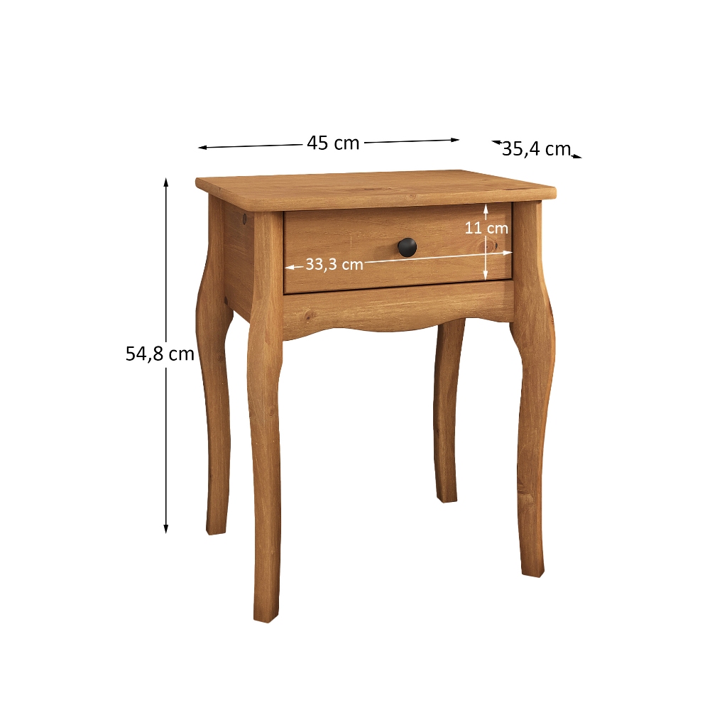 Mesa Cabeceira Madeira 01 Gaveta Corrediças Telescópicas Clássica Freijó Leone