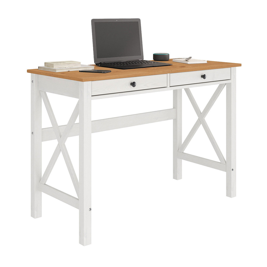 Escrivaninha Com Gaveta Estrutura Em X Rústico Madeira Adrian Branco Freijó