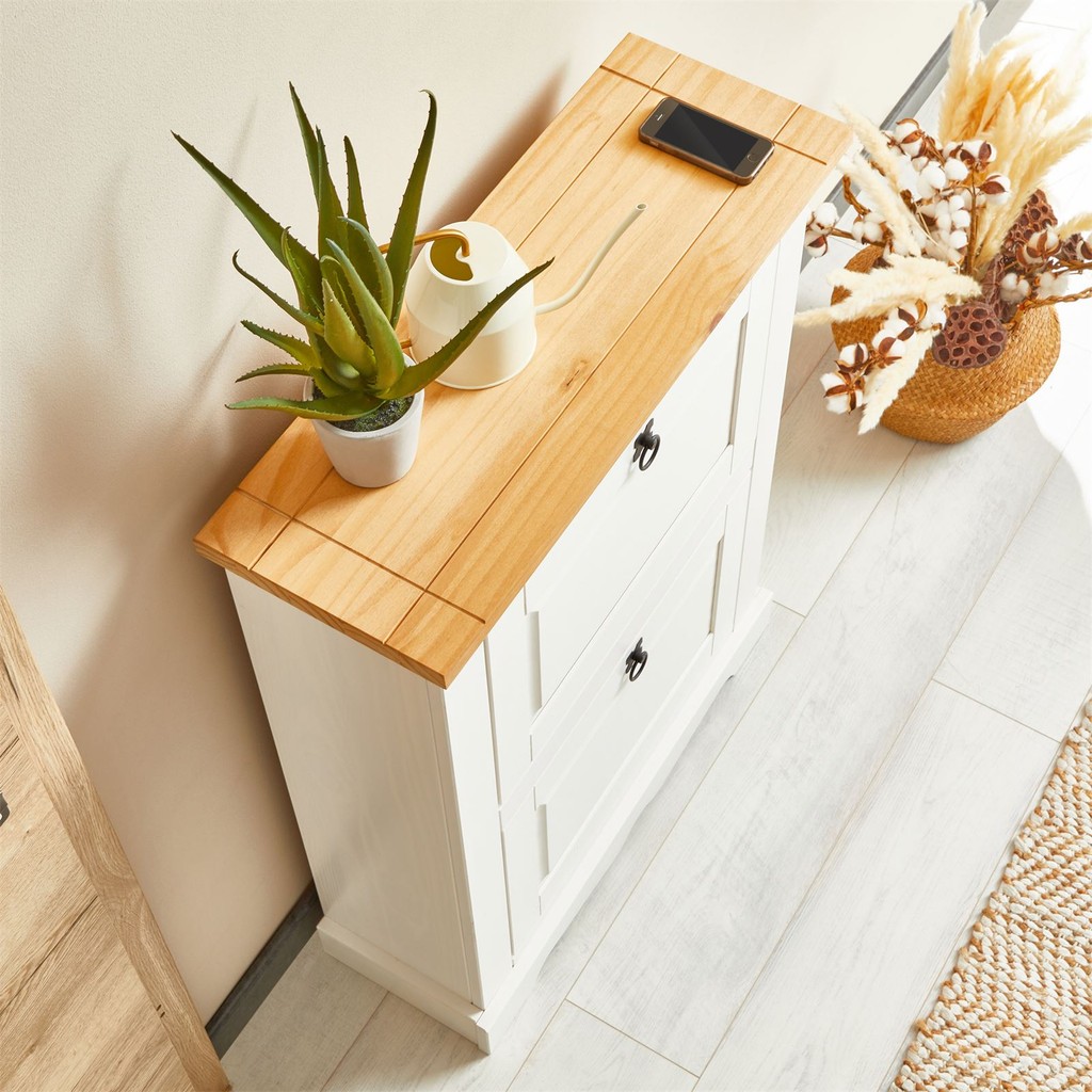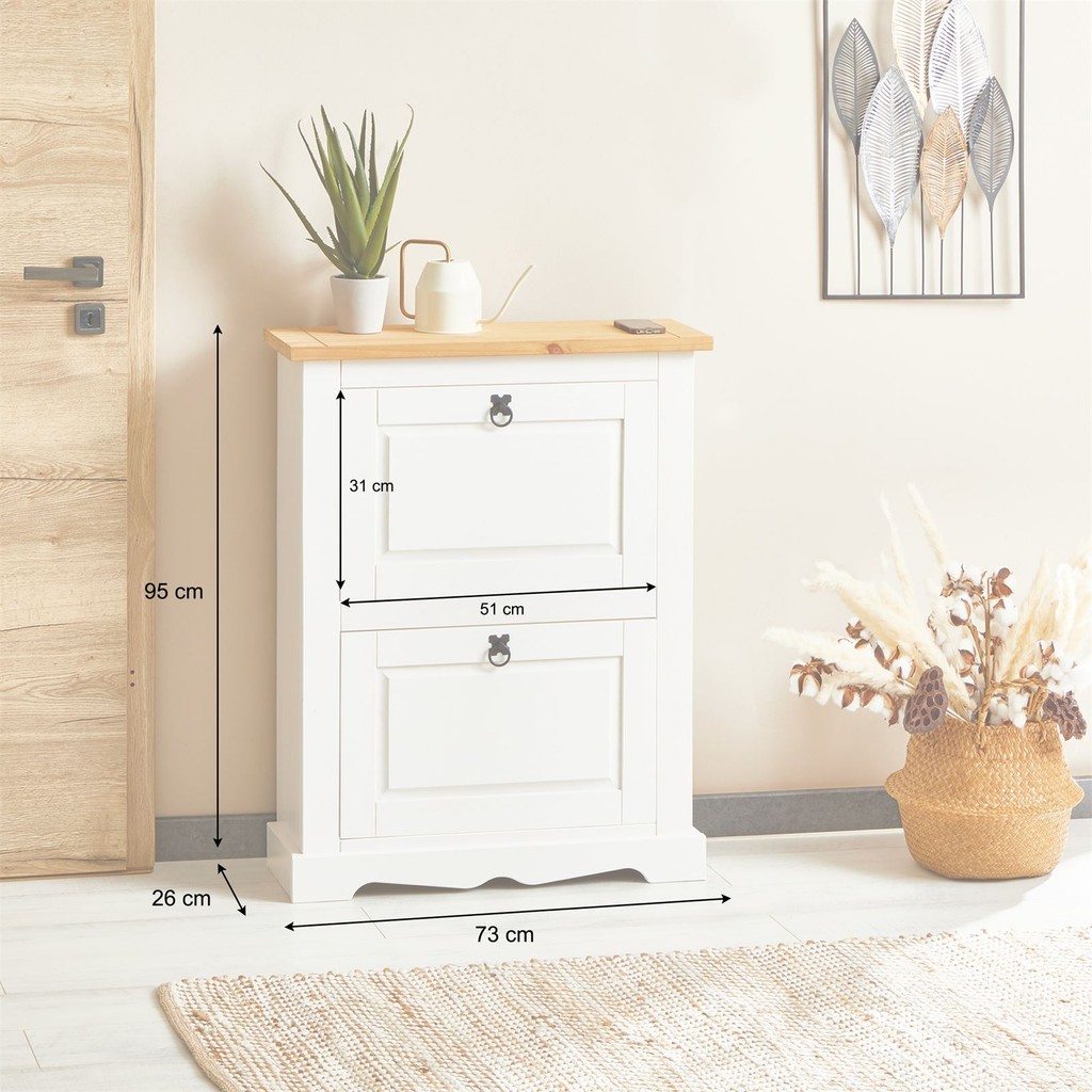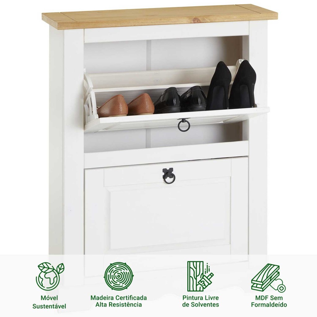 Sapateira Madeira 2 Portas Basculantes 10 Pares Rústico Branco