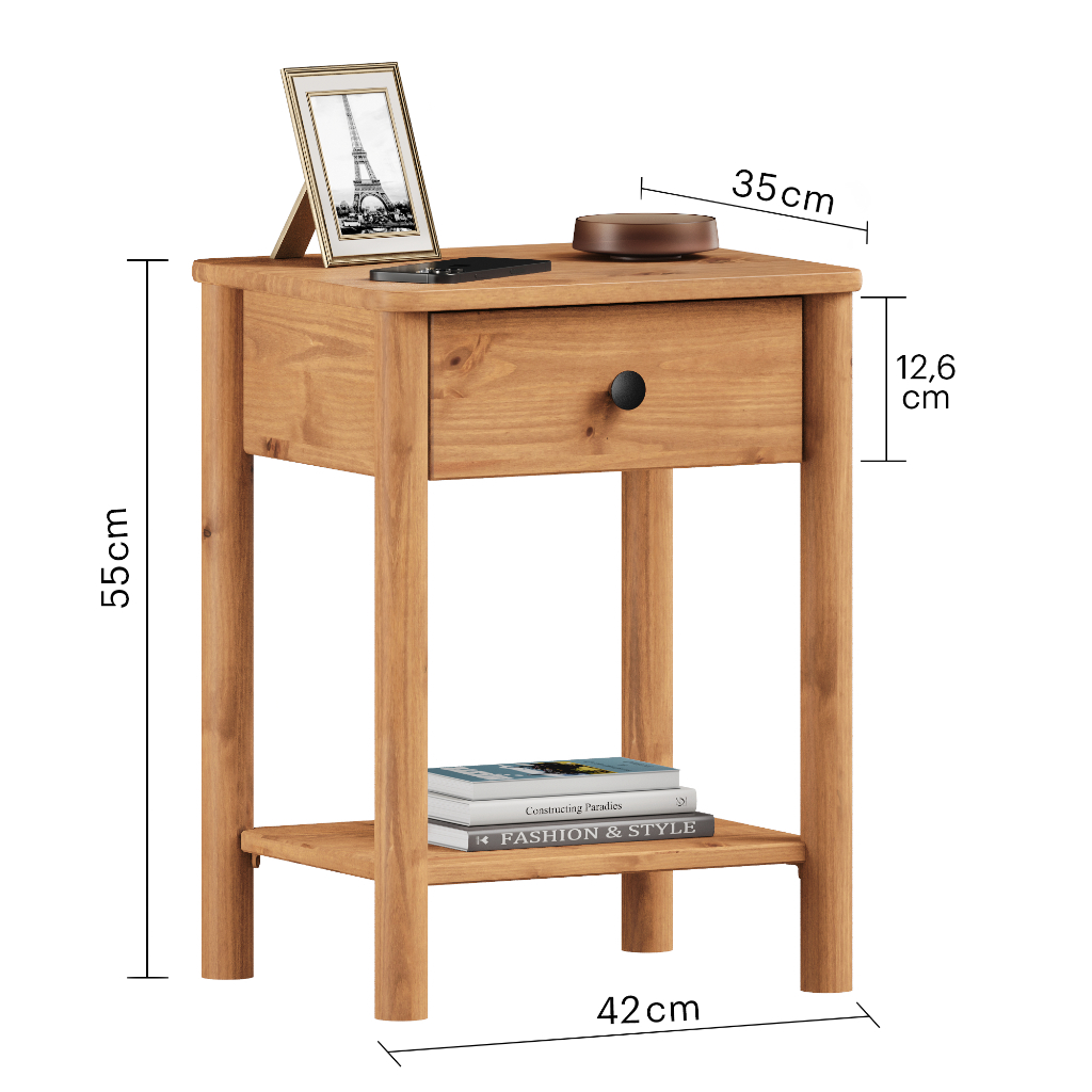Mesa de Cabeceira Quarto Madeirado 1 Gaveta Rústico Apoana