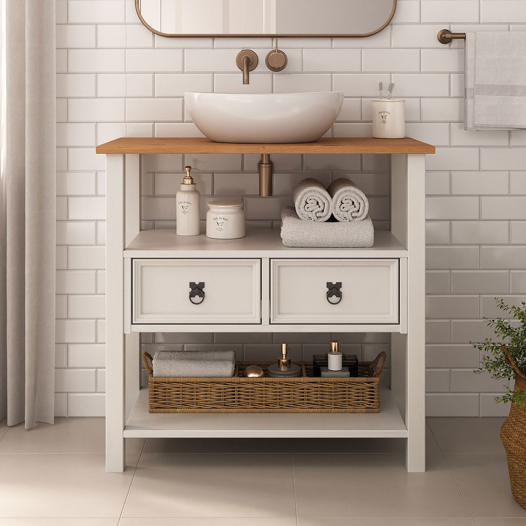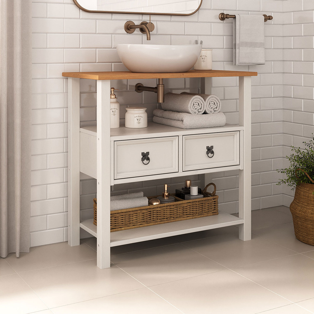 Gabinete Banheiro Balcão Armário Tampo 2 Gav Madeira Tequila Branco Freijó