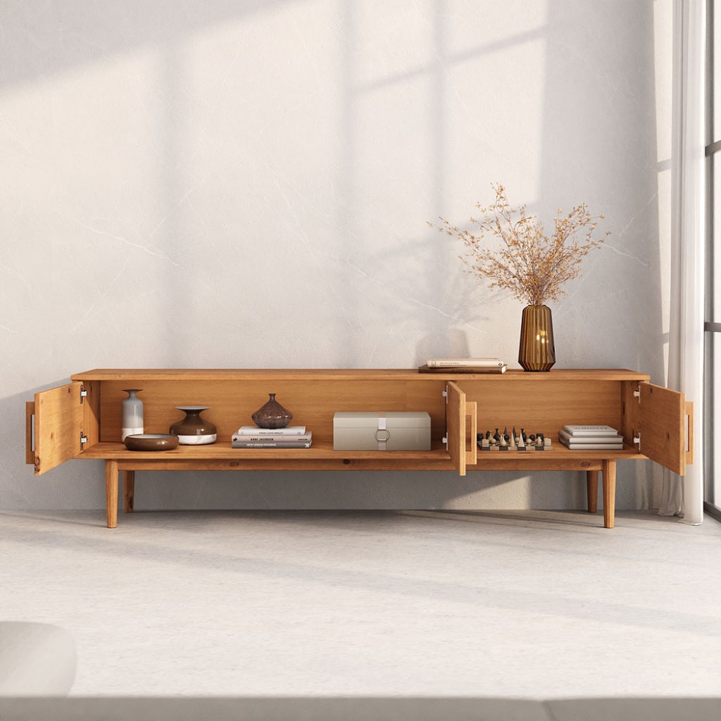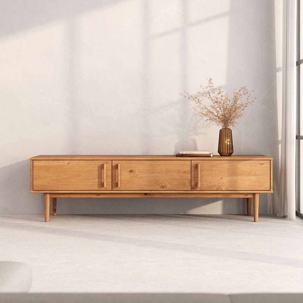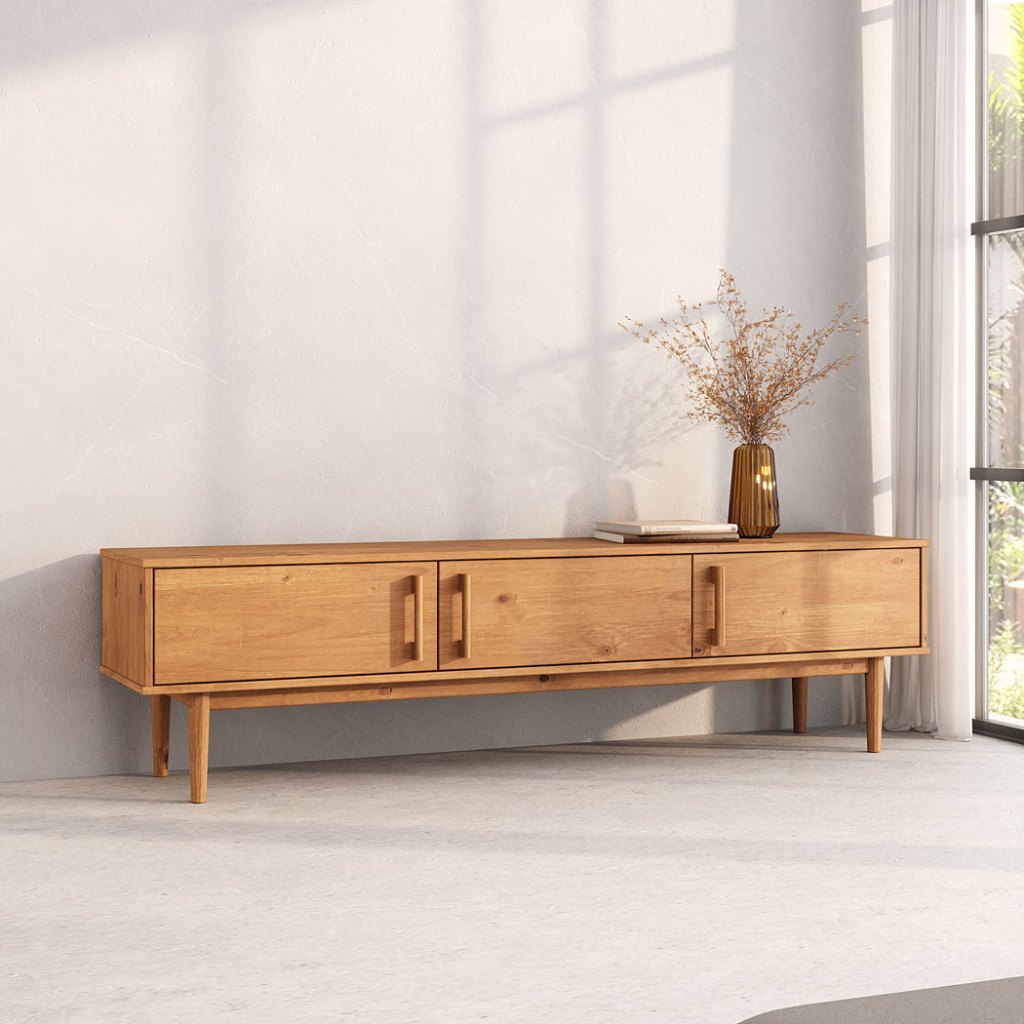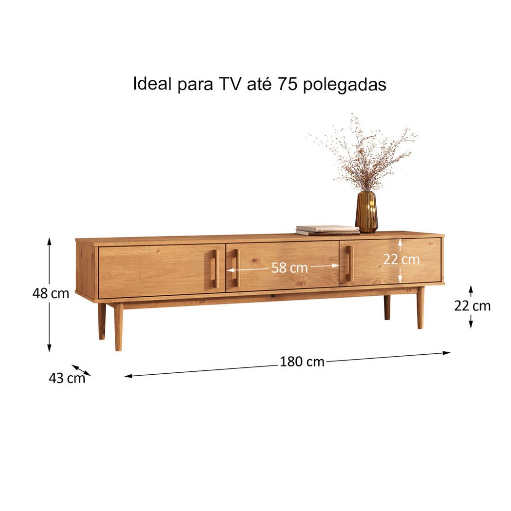 Rack Madeira Maciça TV 75 Moderno Natural Pés Retos Freijó TECCA