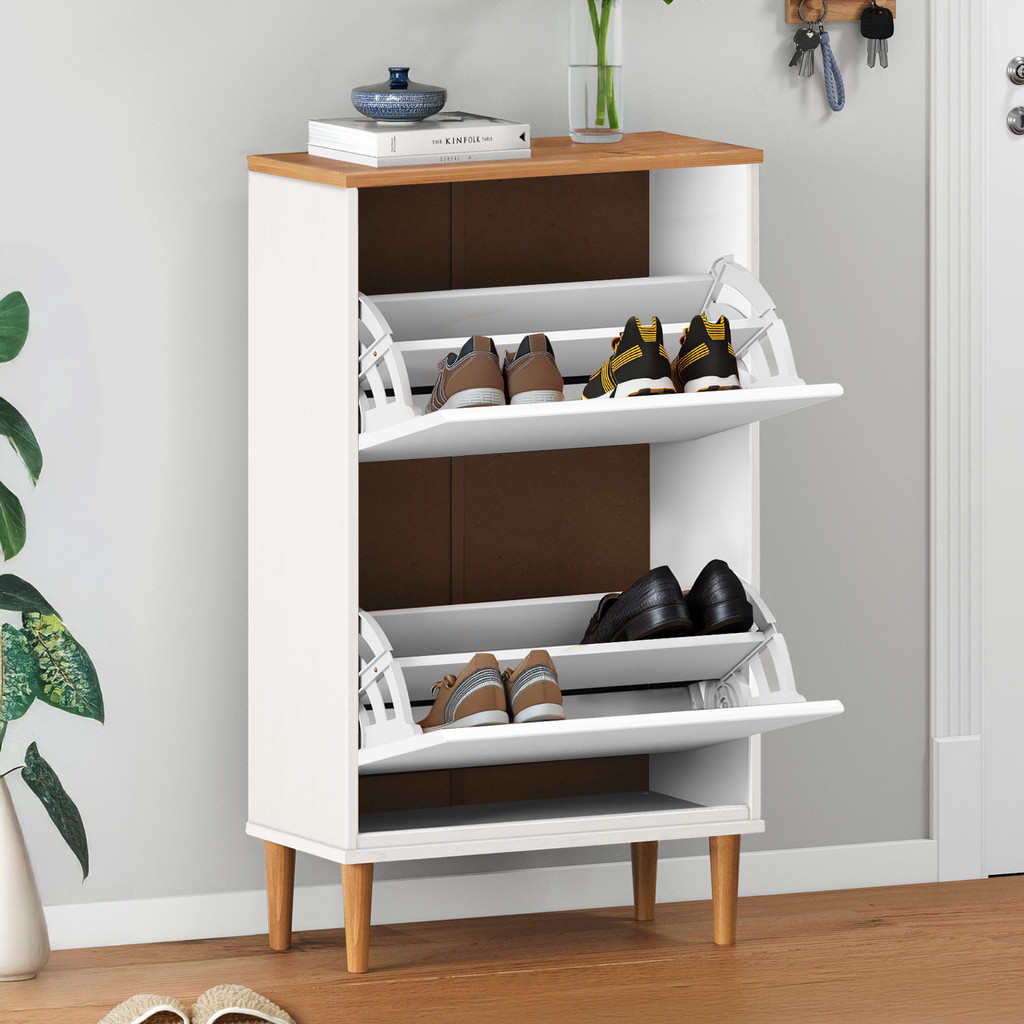 Sapateira Compacta Vertical 2 Portas Madeira 12 Pares Branco Freijó Mikka