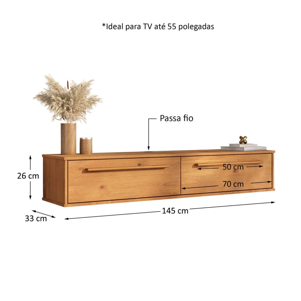 Rack Suspenso Flutuante 145 cm Compacto Madeira TV 55 Freijó TECCA