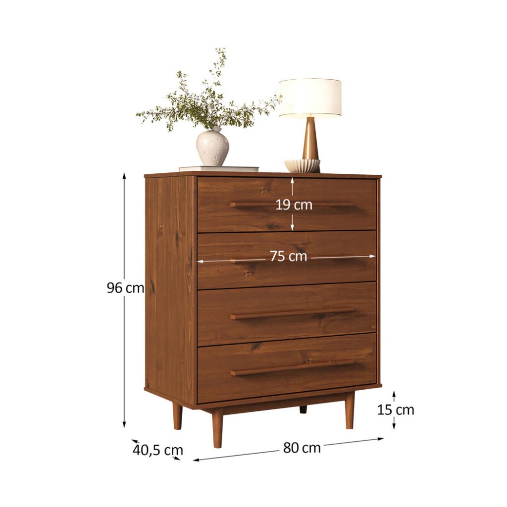 Cômoda Para Quarto Minimalista Pés Retos Castanho TECCA