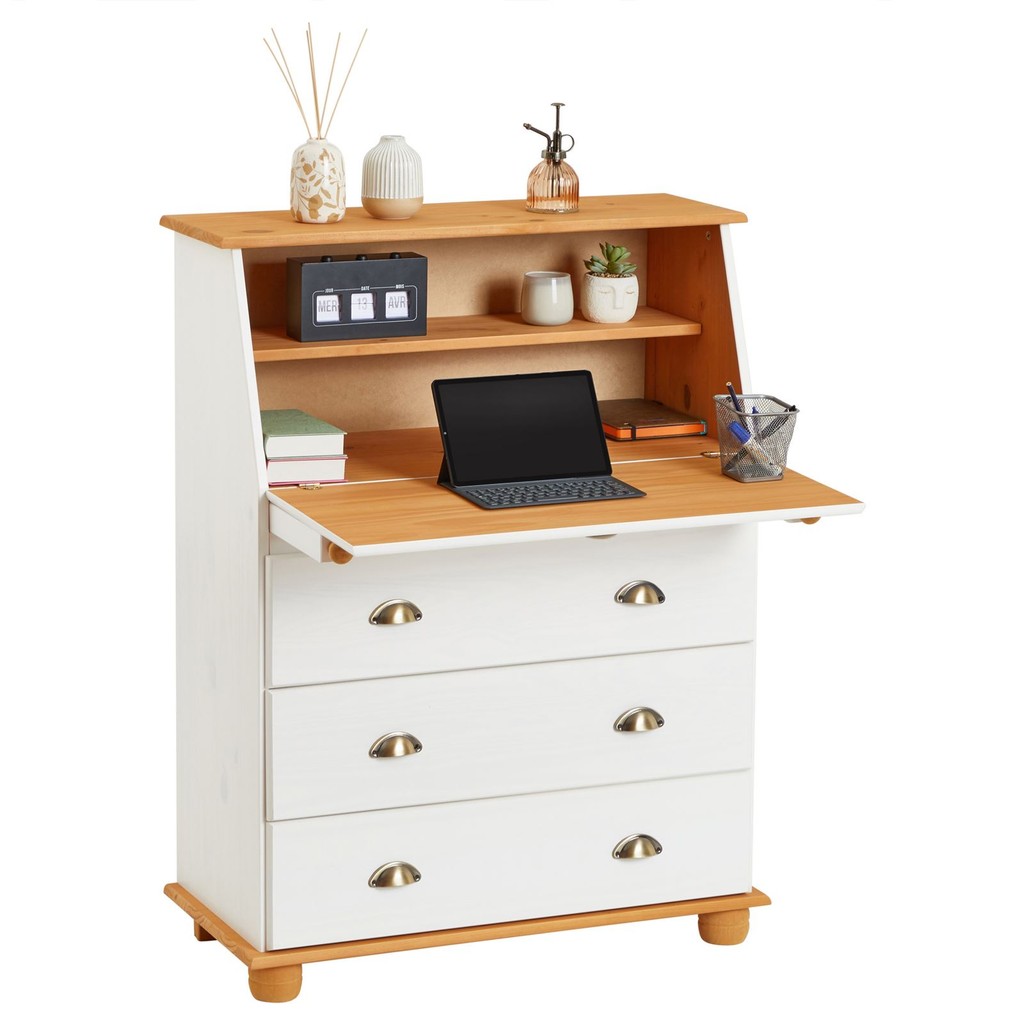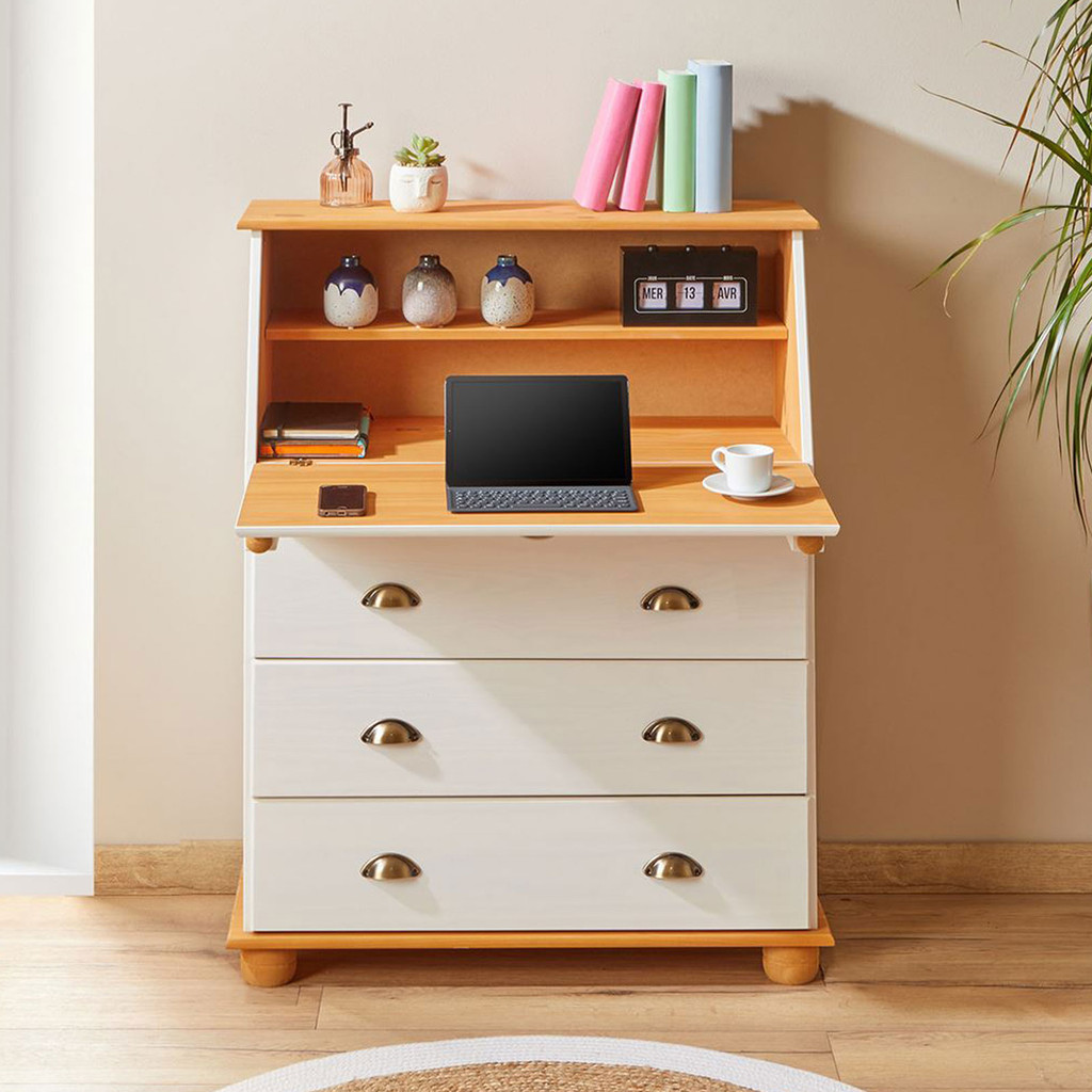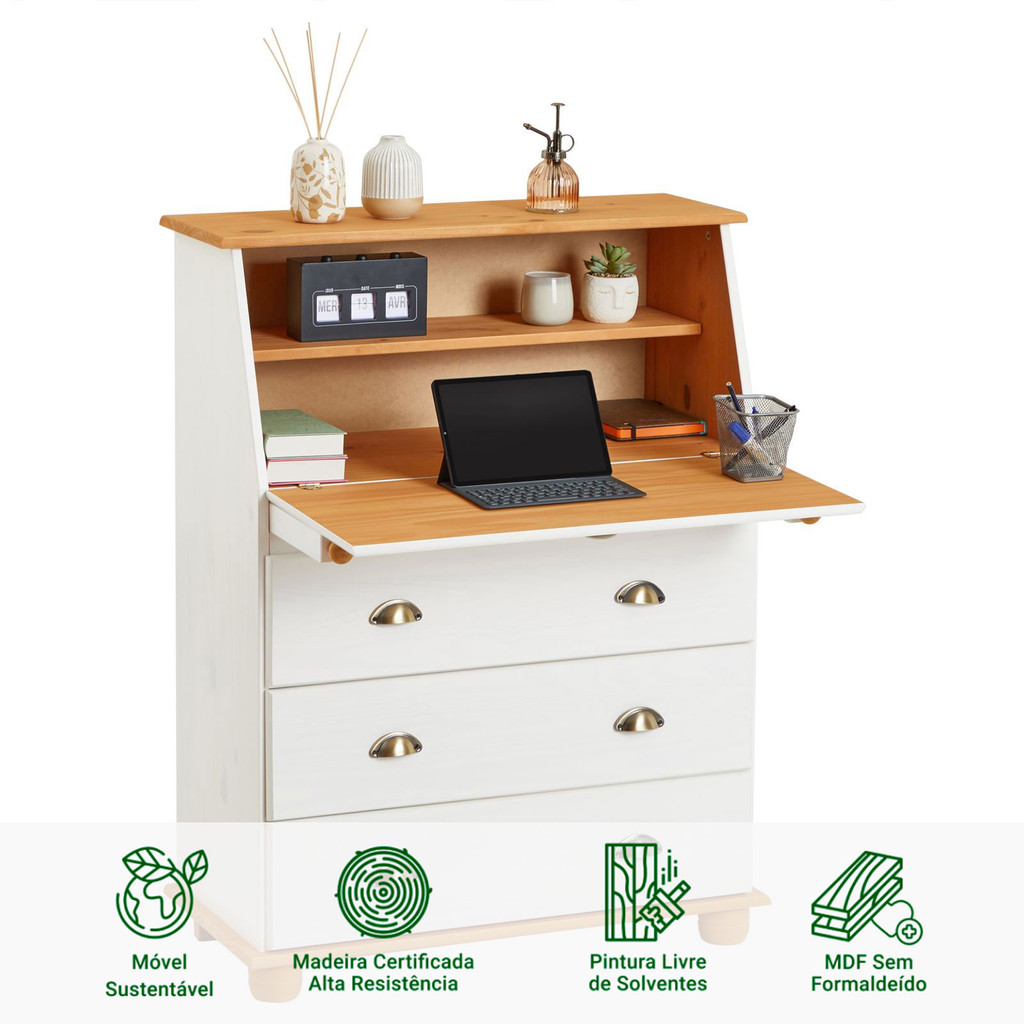 Escrivaninha Mesa Madeira 3 Gavetas Gomes Branco Mel