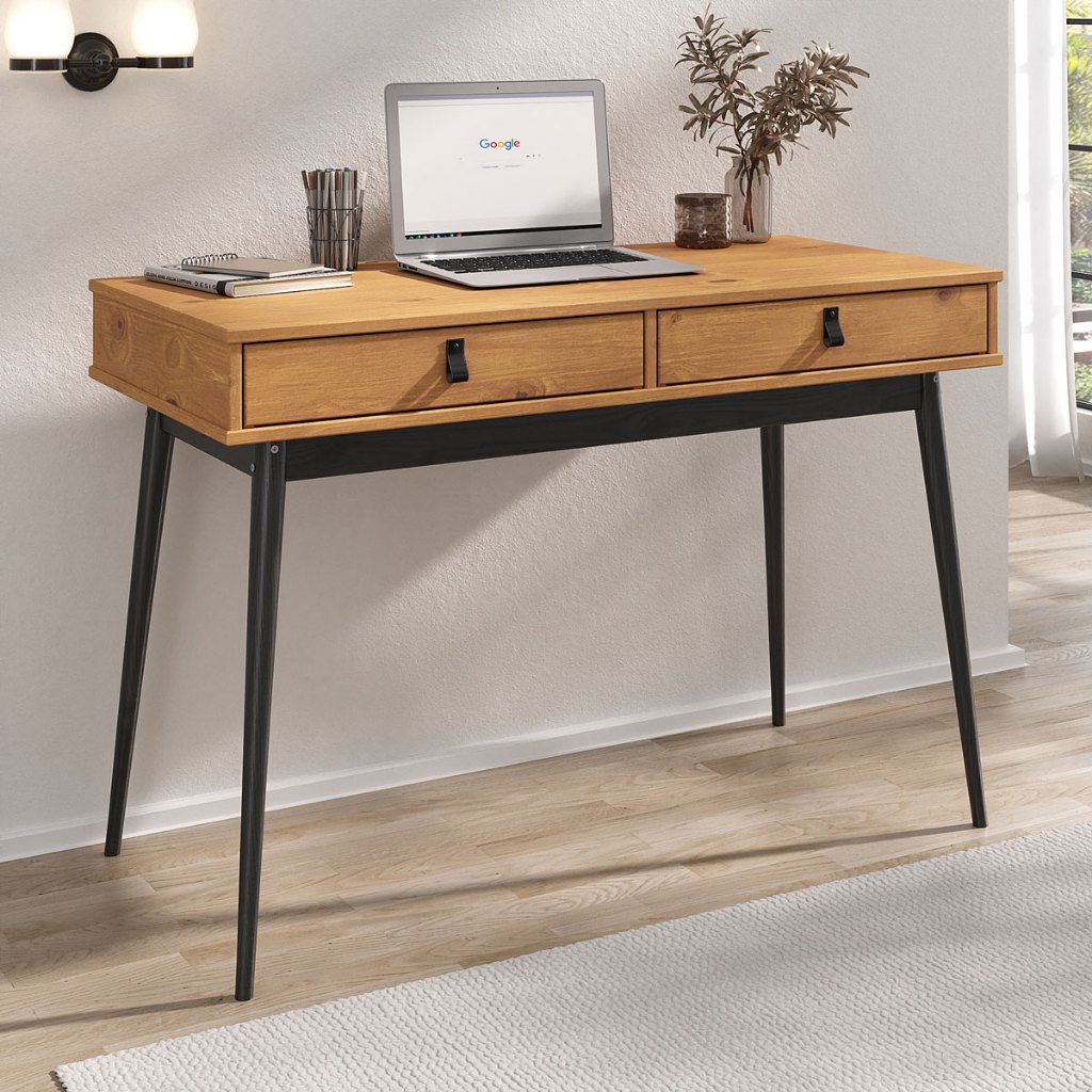 Mesa de Trabalho Escandinava Retrô 2 Gav Madeira Freijó Preto Wanda