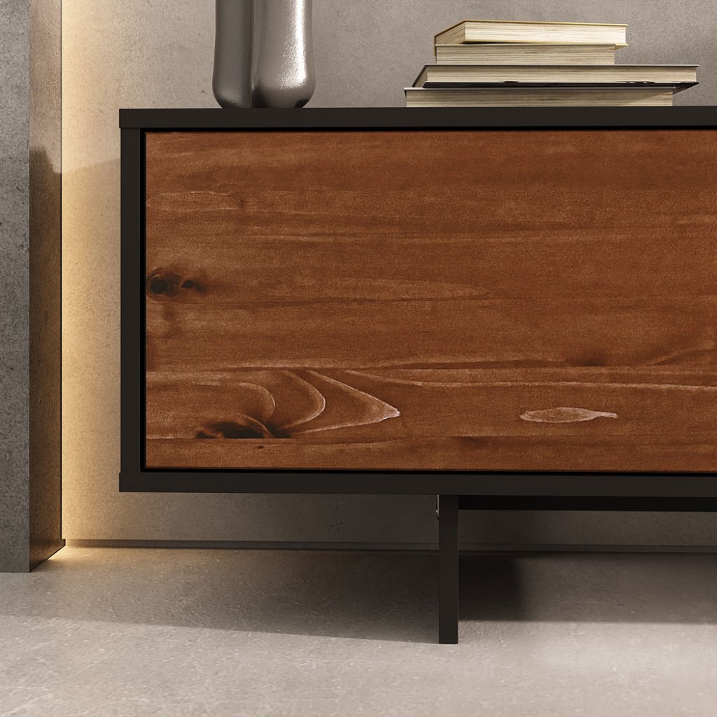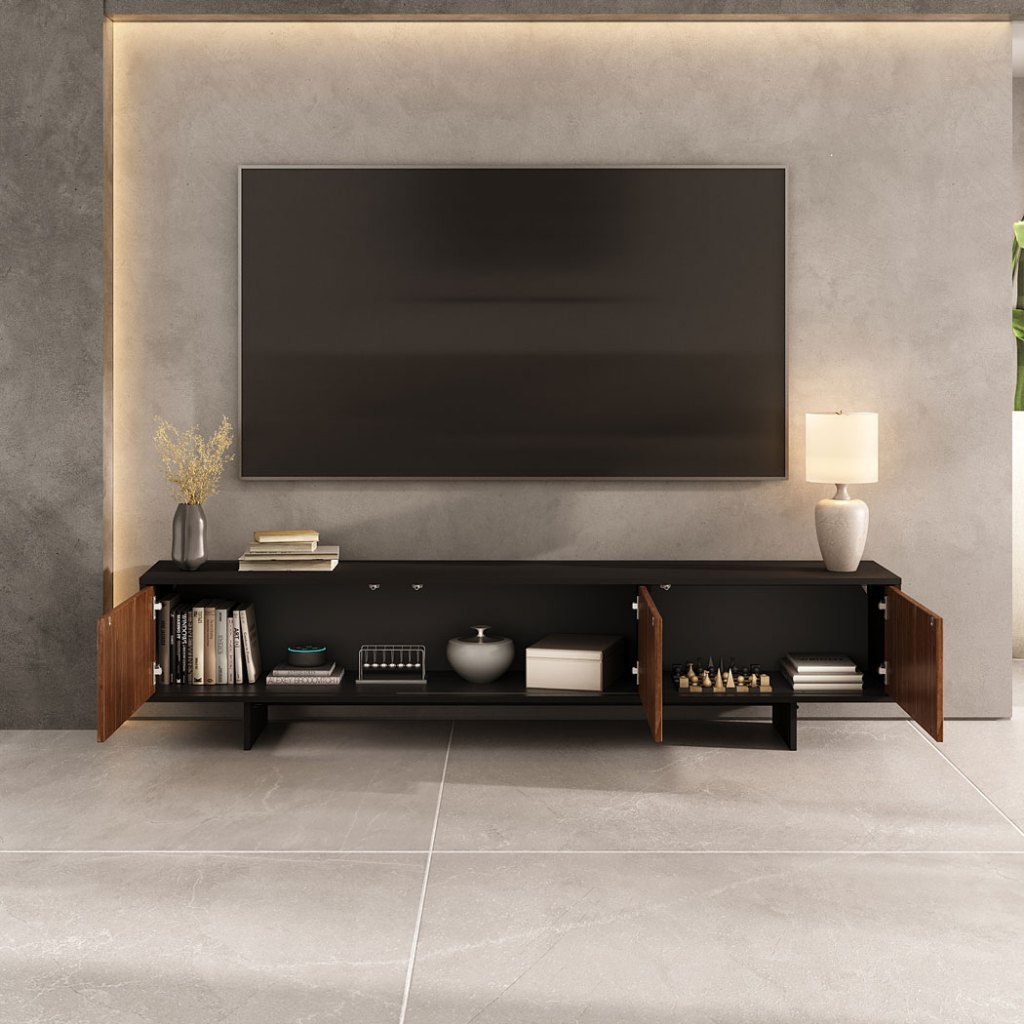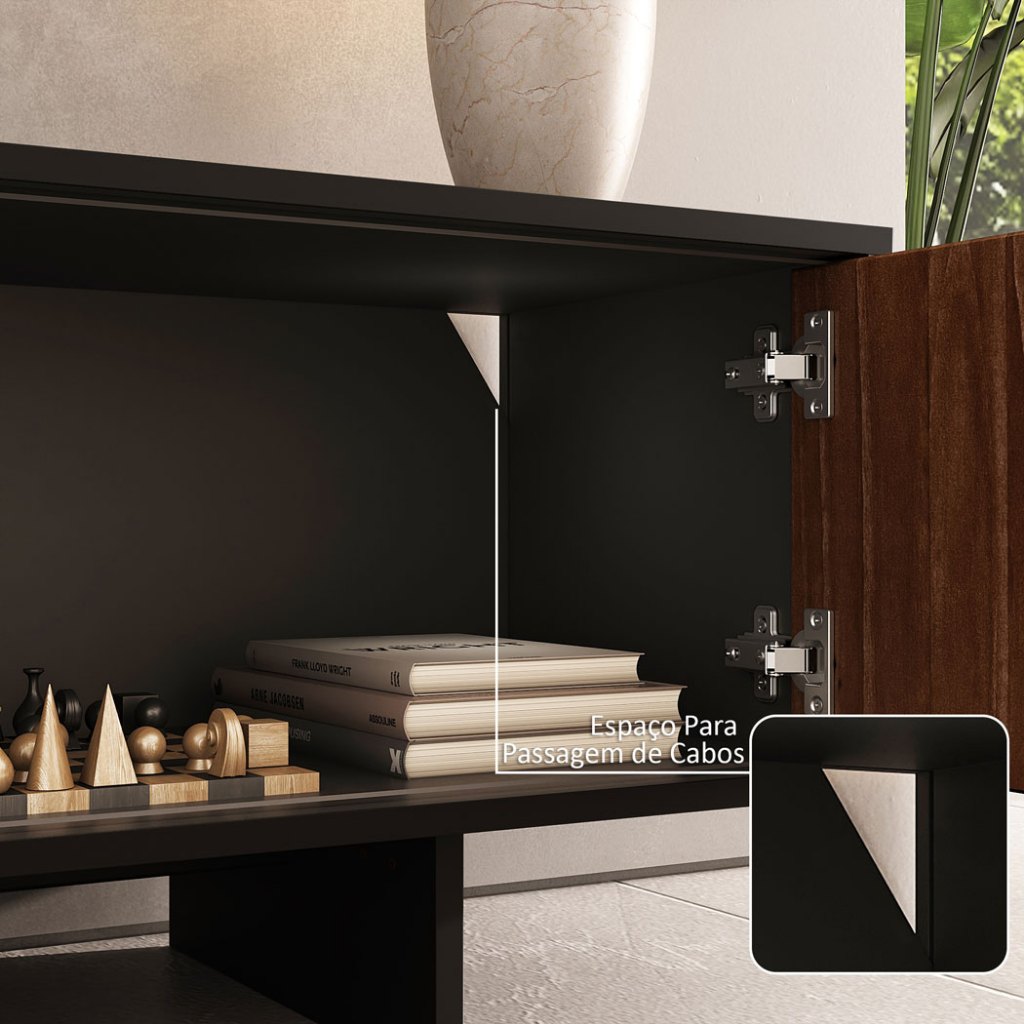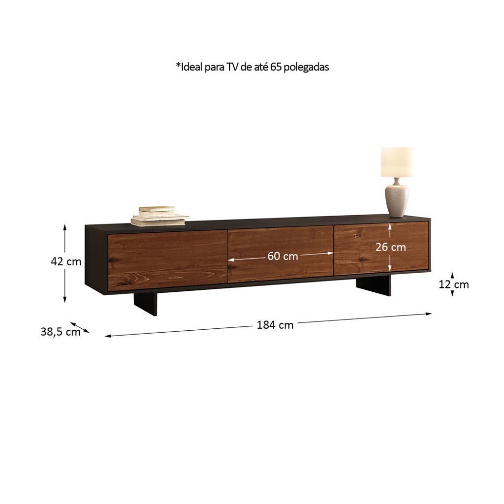 Rack Preto Madeira TV 75 Para Sala Moderno 184 cm 3 Portas ARTO