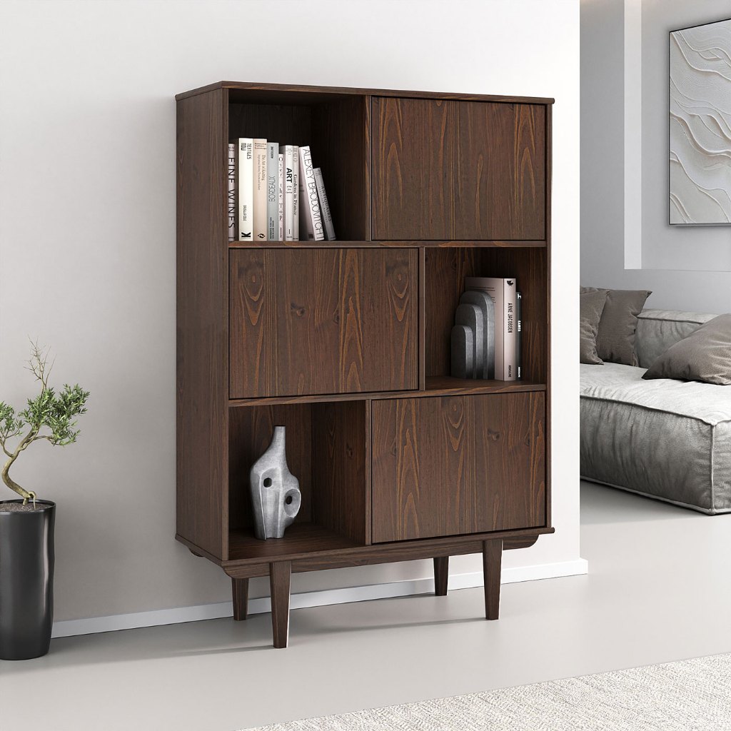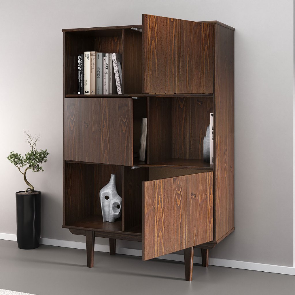 Estante Para Livros Office 3 Portas 3 Nichos Madeira Cor Imbuia Simona