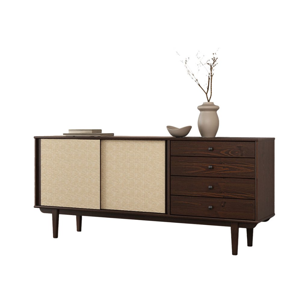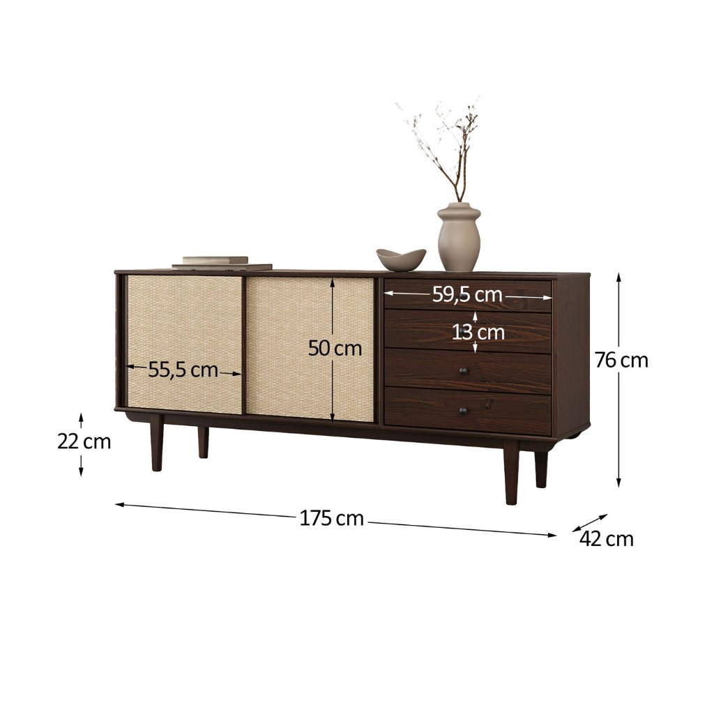 Balcão Aparador Telinha Rattan Buffet 2 Portas 4Gav Madeira Cor Imbuia Simona