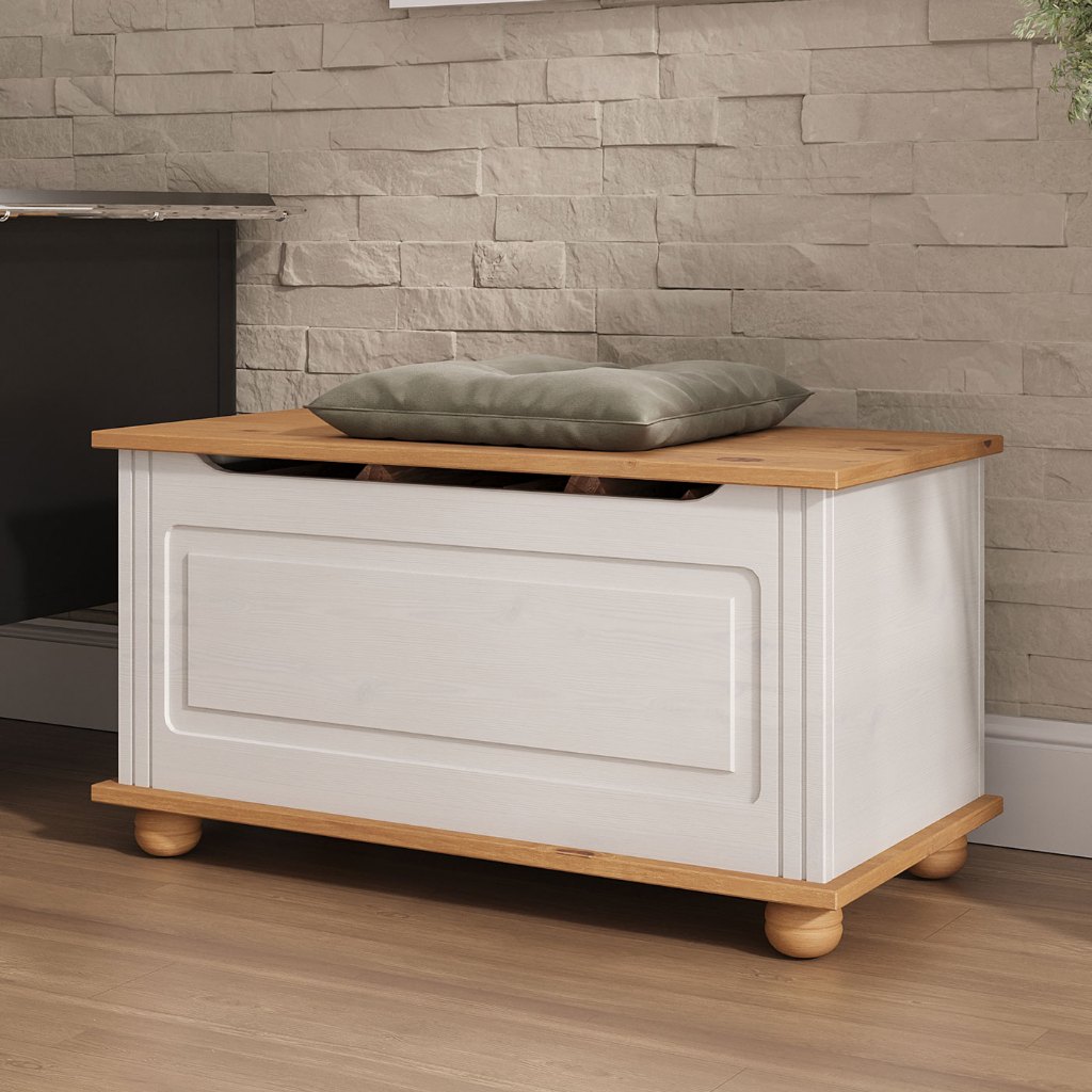 Baú Assento Organizador Madeira Maciça Bristol