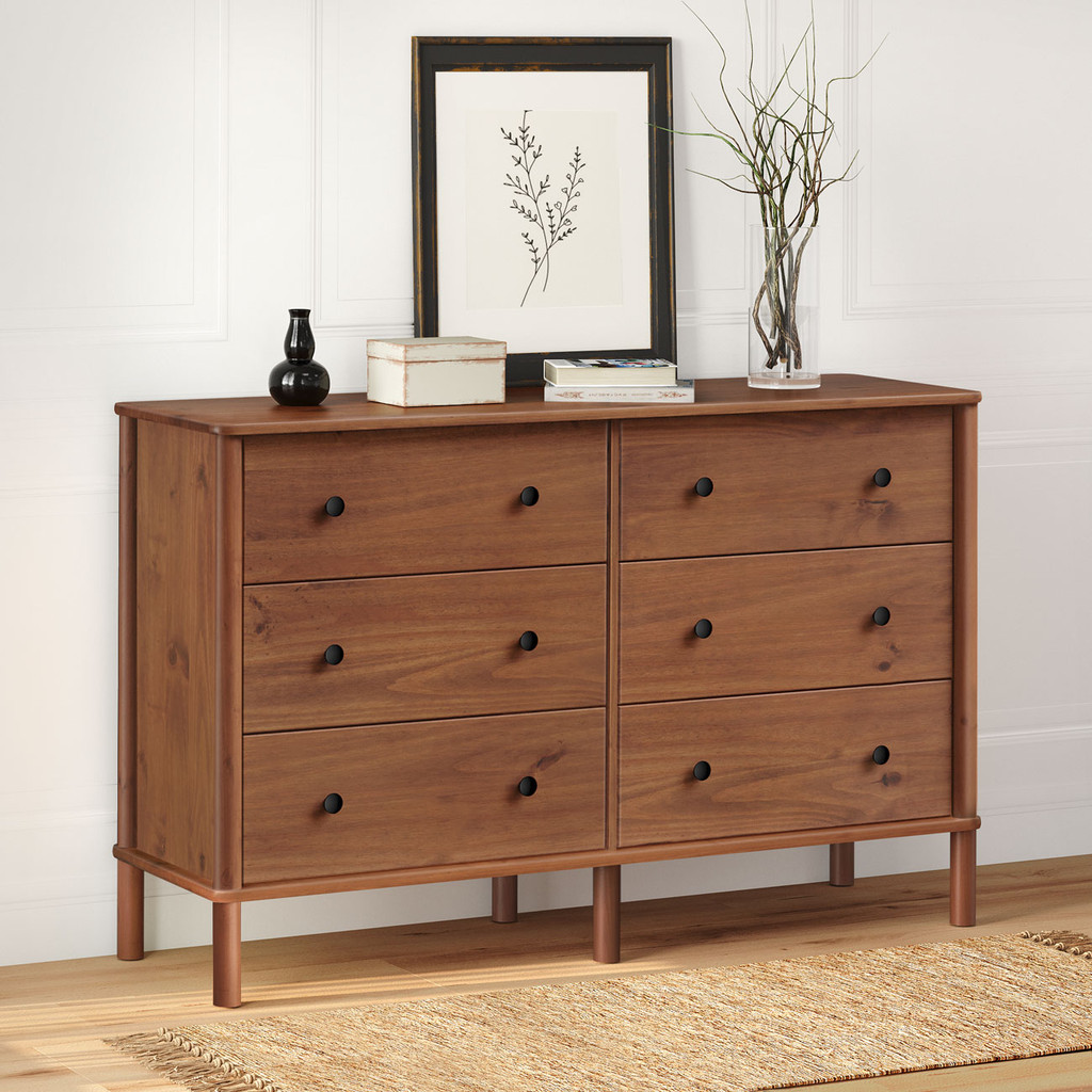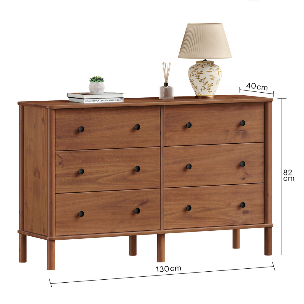 Cômoda para Quarto Madeira 6 Gavetas Moderna Apoana Castanho