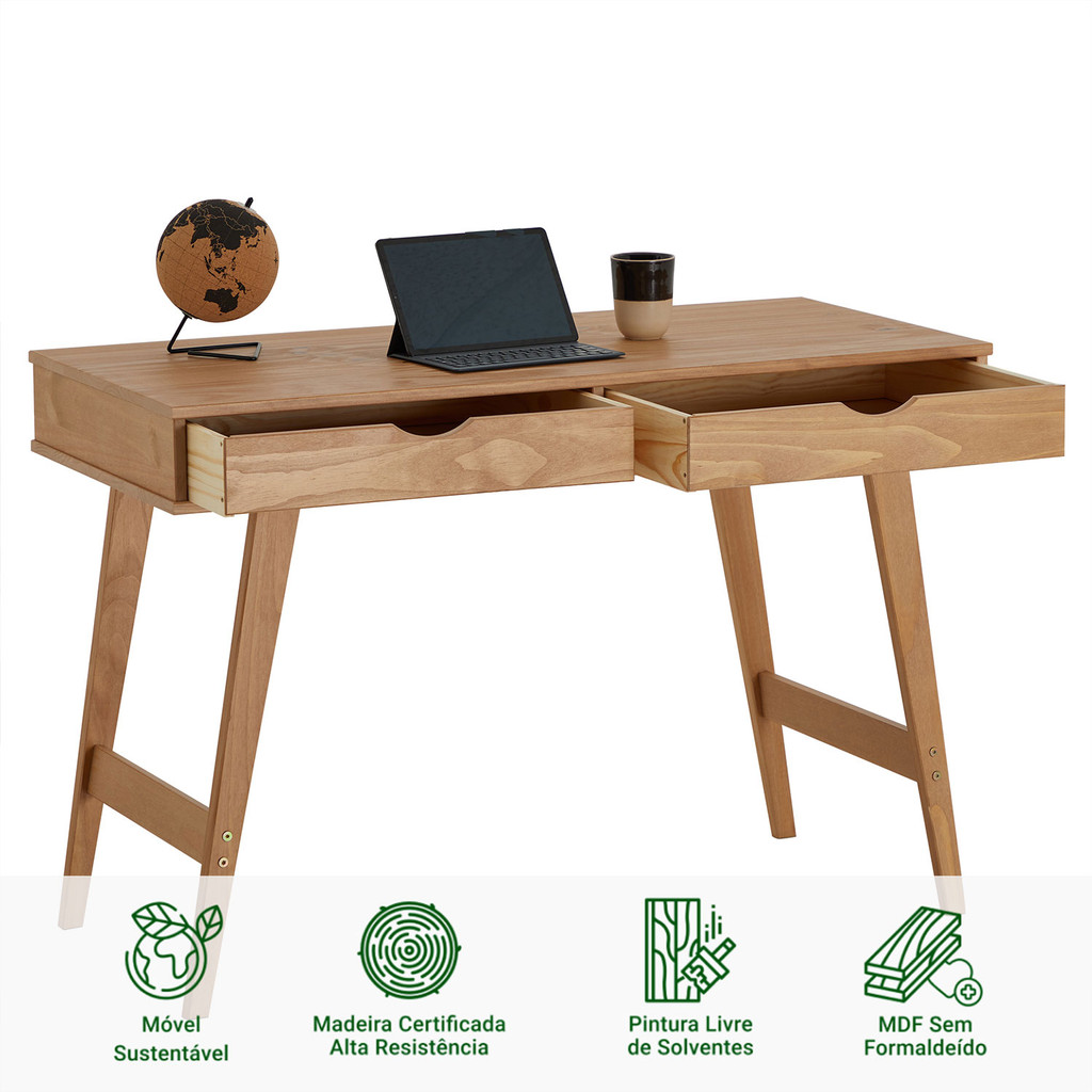 Mesa Escrivaninha Retro Madeira 2 Gavetas Milo