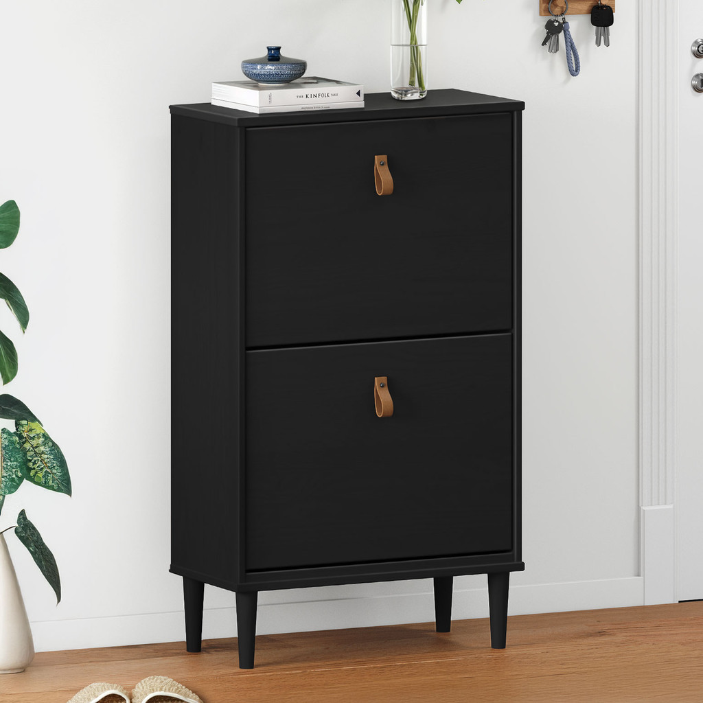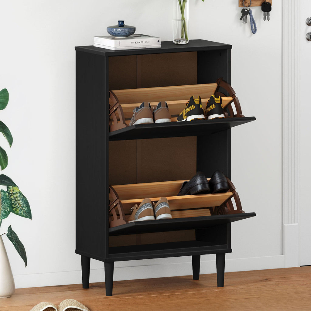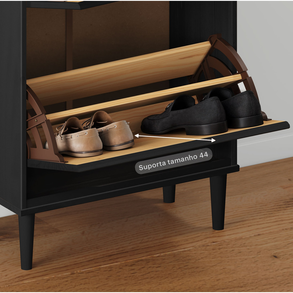 Aparador Sapateira Basculante Tamanho 44 Vintage Madeira Preto Mikka