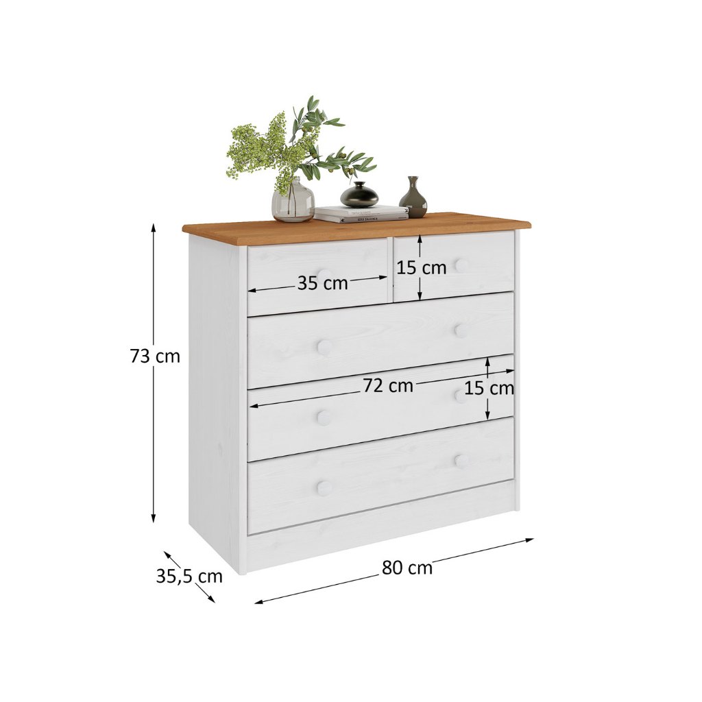 Cômoda Madeira Maciça 5 Gavetas Rondo
