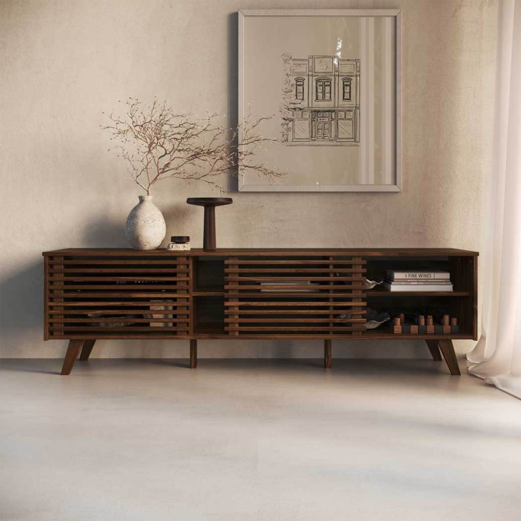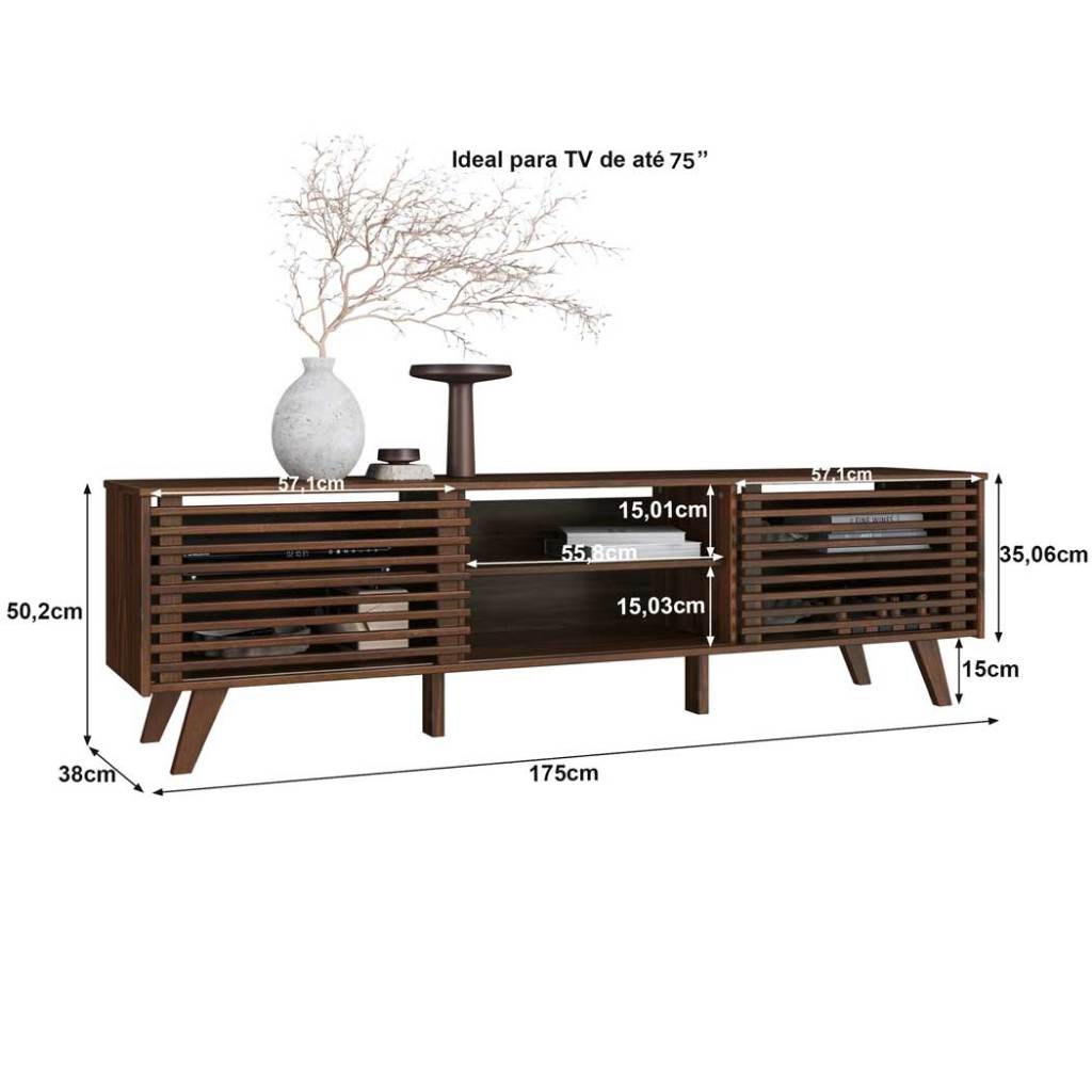Rack Para Sala TV 75 Ripado Portas Deslizantes 175 cm Madeira Cor Imbuia Rian