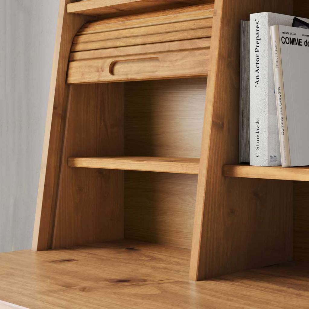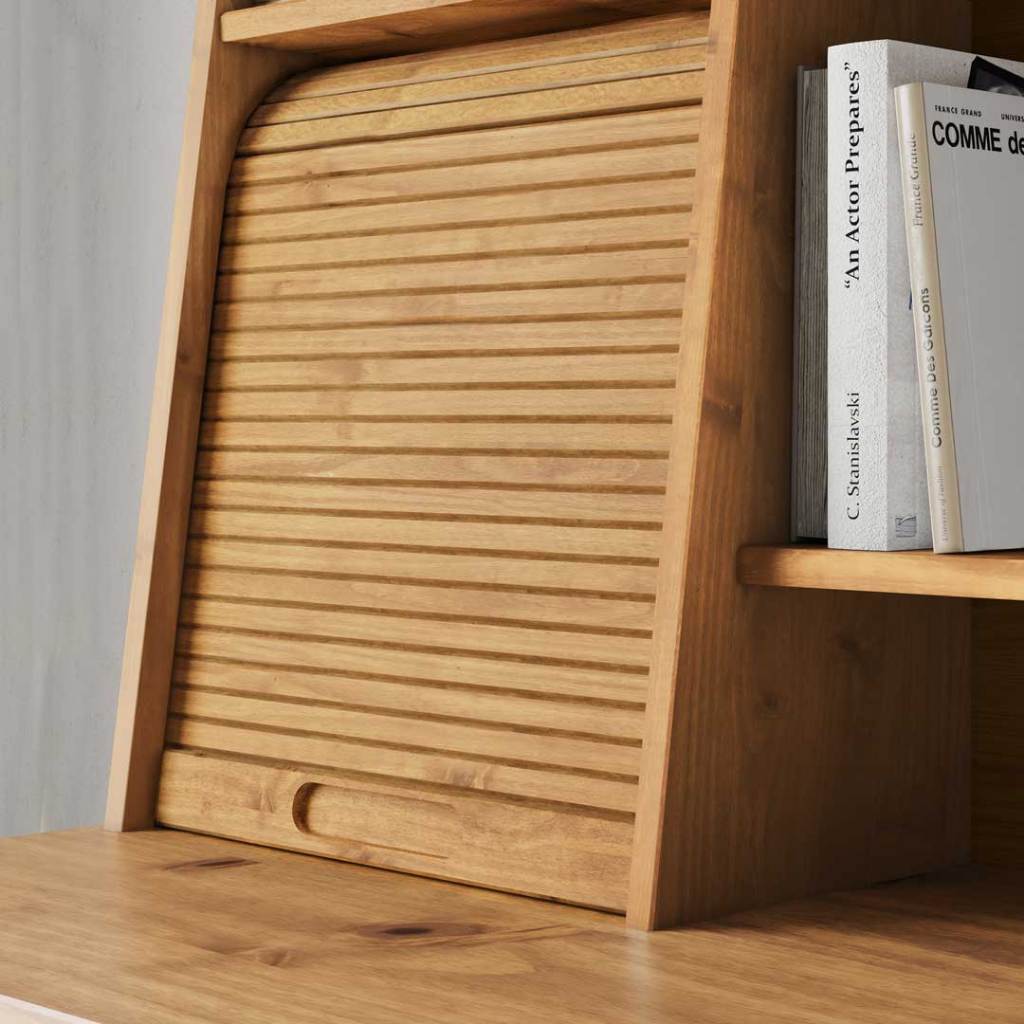 Mesa Estudo 110 cm Estante Madeira Rolltop 2 Gavetas Freijó Alisa