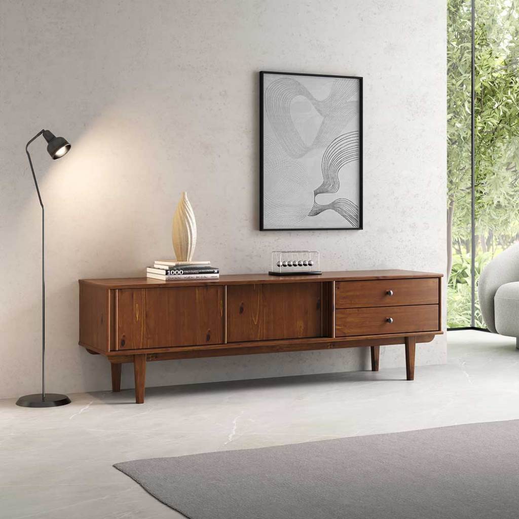 Rack Para Sala TV 75 Madeira 2 Gavetas Castanho 175 cm Simona