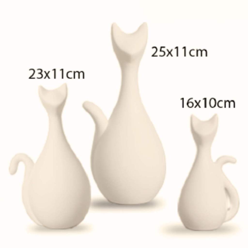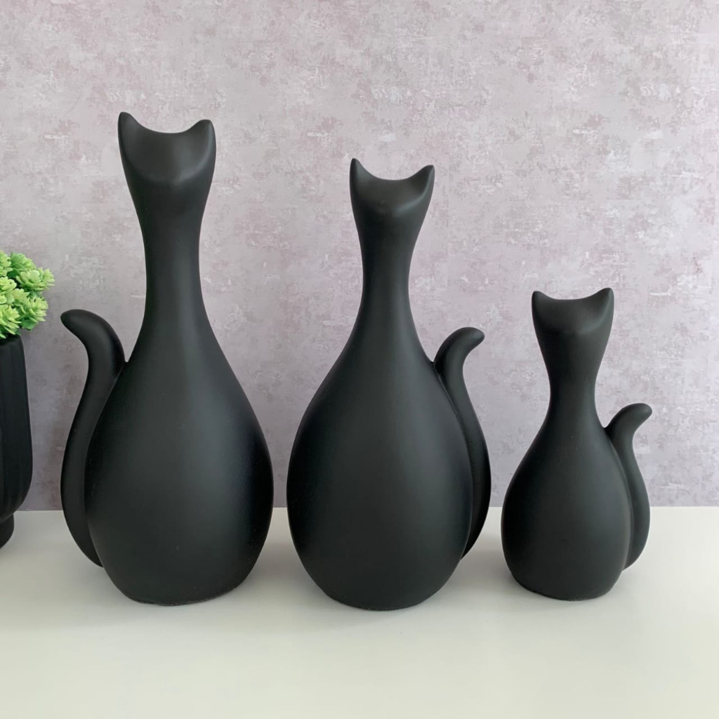 Enfeite Família Gato Trio Estatuetas gatinhos em Cerâmica para Decoração de sala Rack Estante