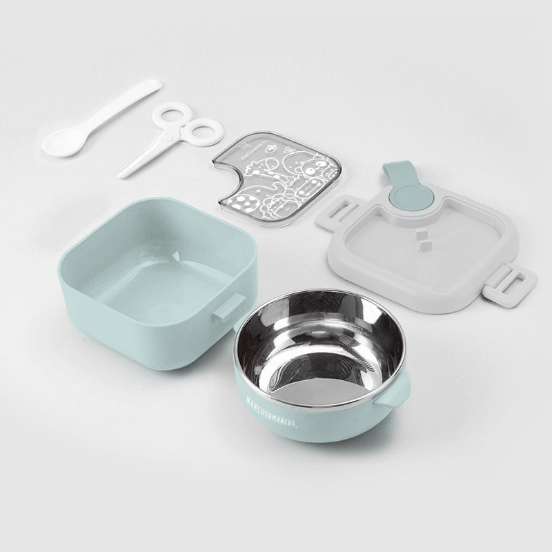 Kit Alimentação Passeio Tigela 2 Estágios Colher e Tesoura Azul - Marcus & Marcus