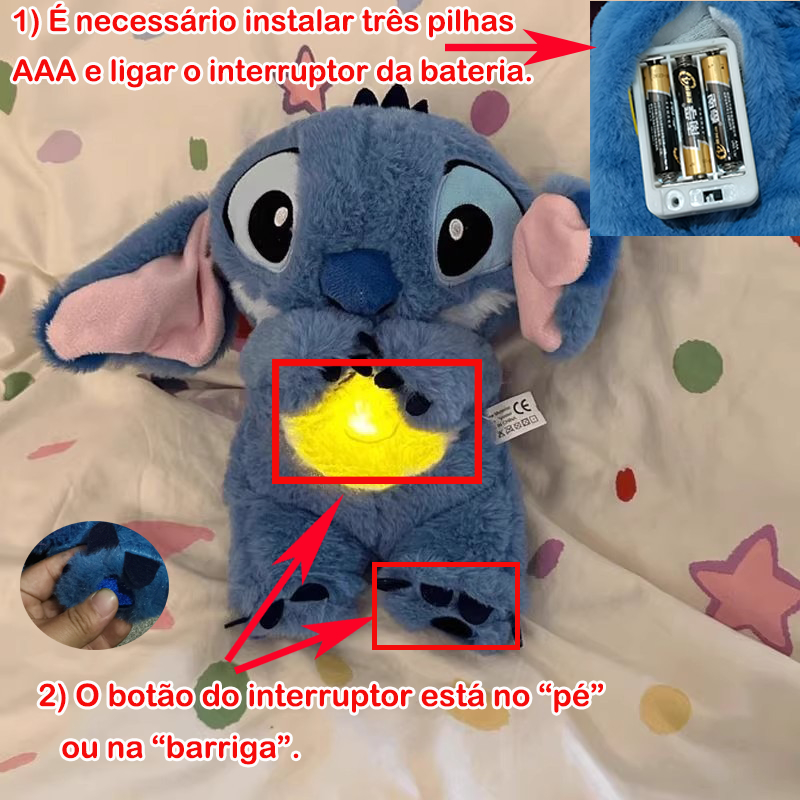 stitch de Pelúcia que Respira e Ajuda na Hora de Dormir-(stitch que Respira com Luzes e Sons Relaxantes