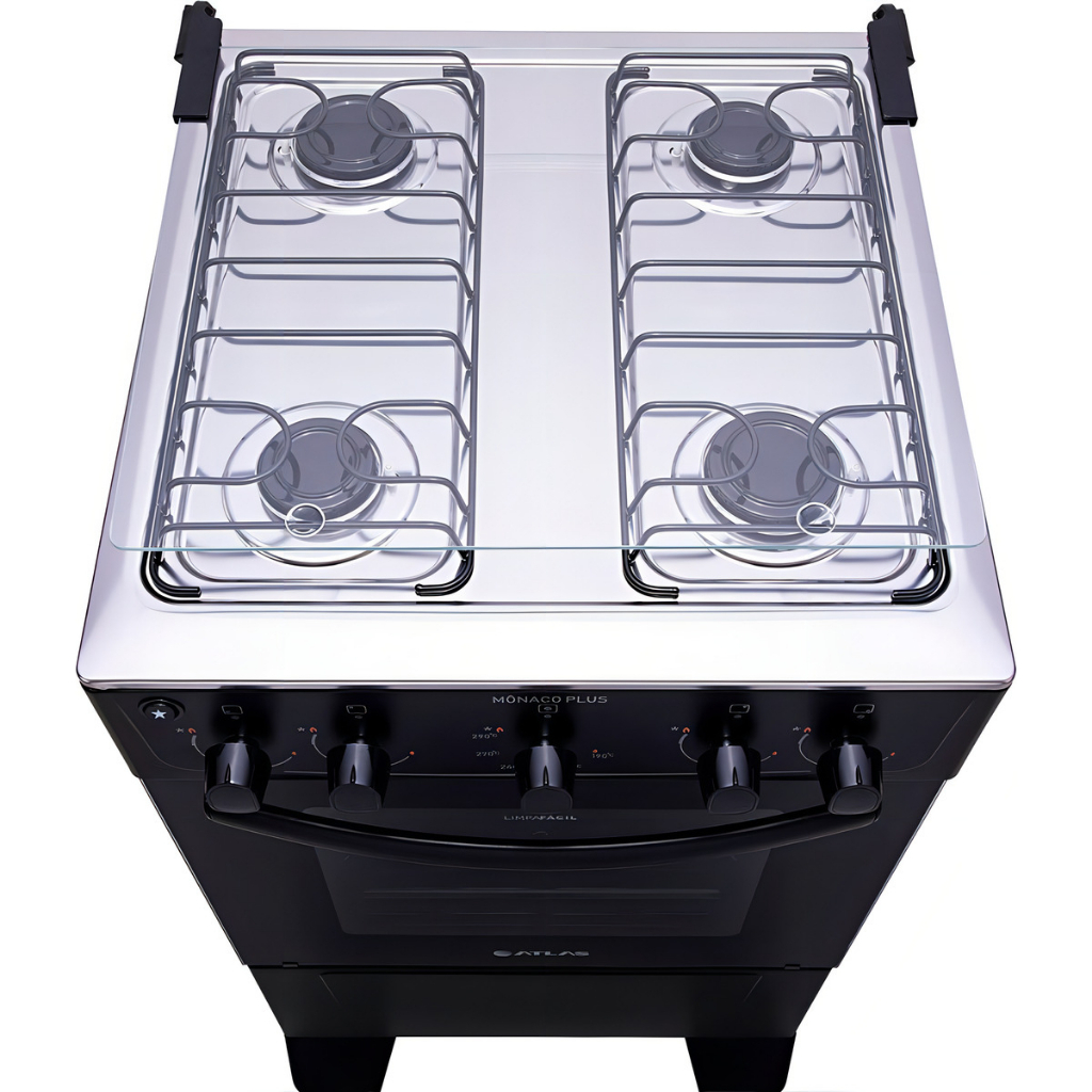 Fogão 4 Bocas Atlas Mônaco Plus Preto Com Mesa Inox E Acendimento Automático Bivolt