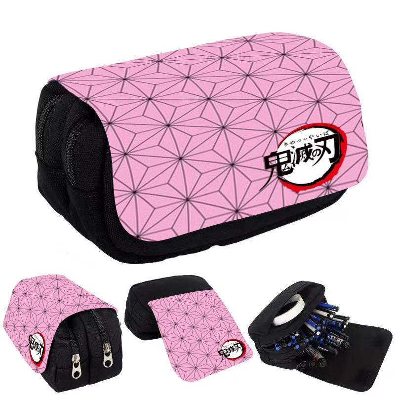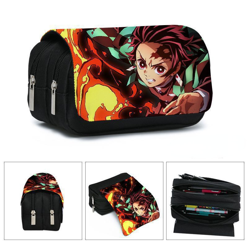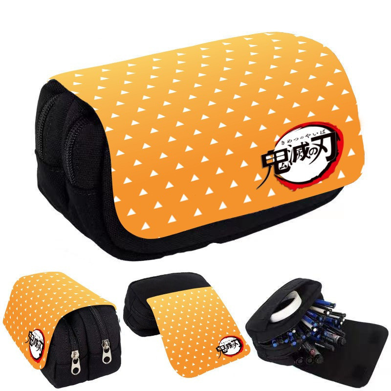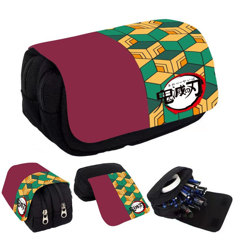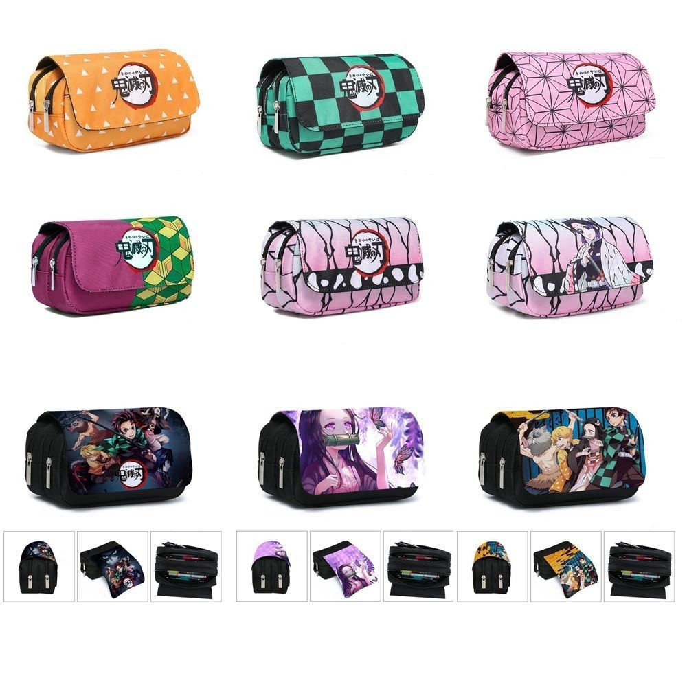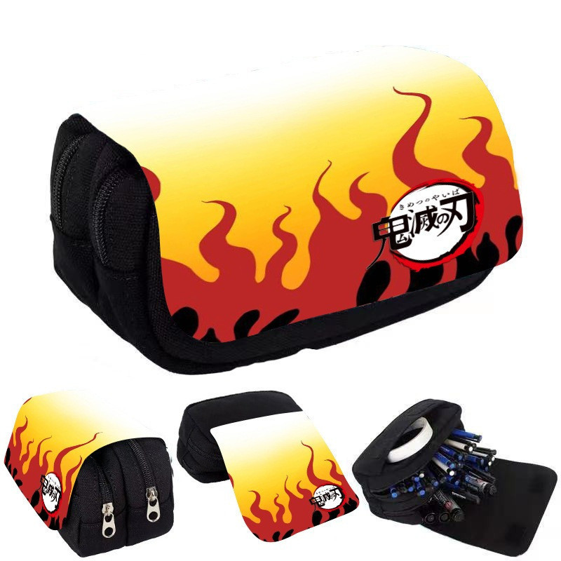 Estojo de Lápis de Grande Capacidade com Camada Dupla Demon Slayer Bolsa de Lona com Zíper Suprimentos para Escritório e