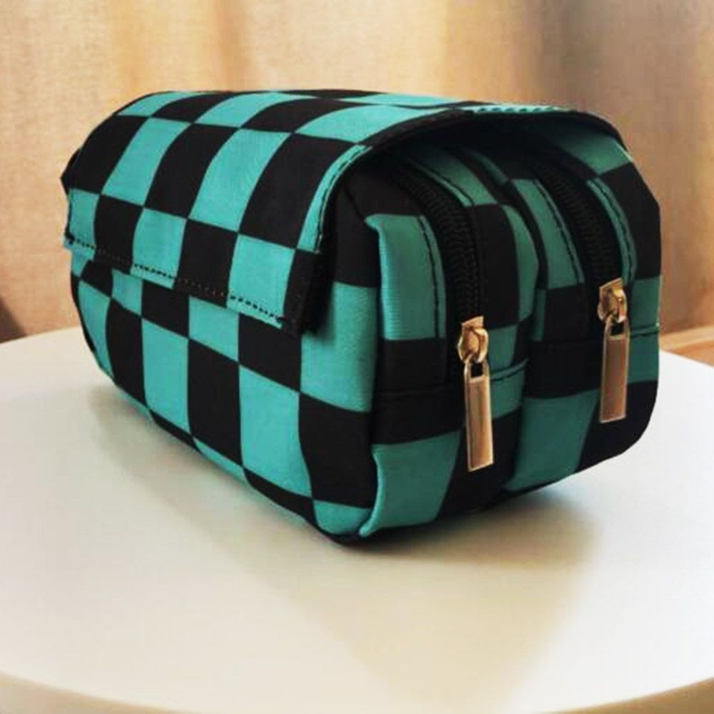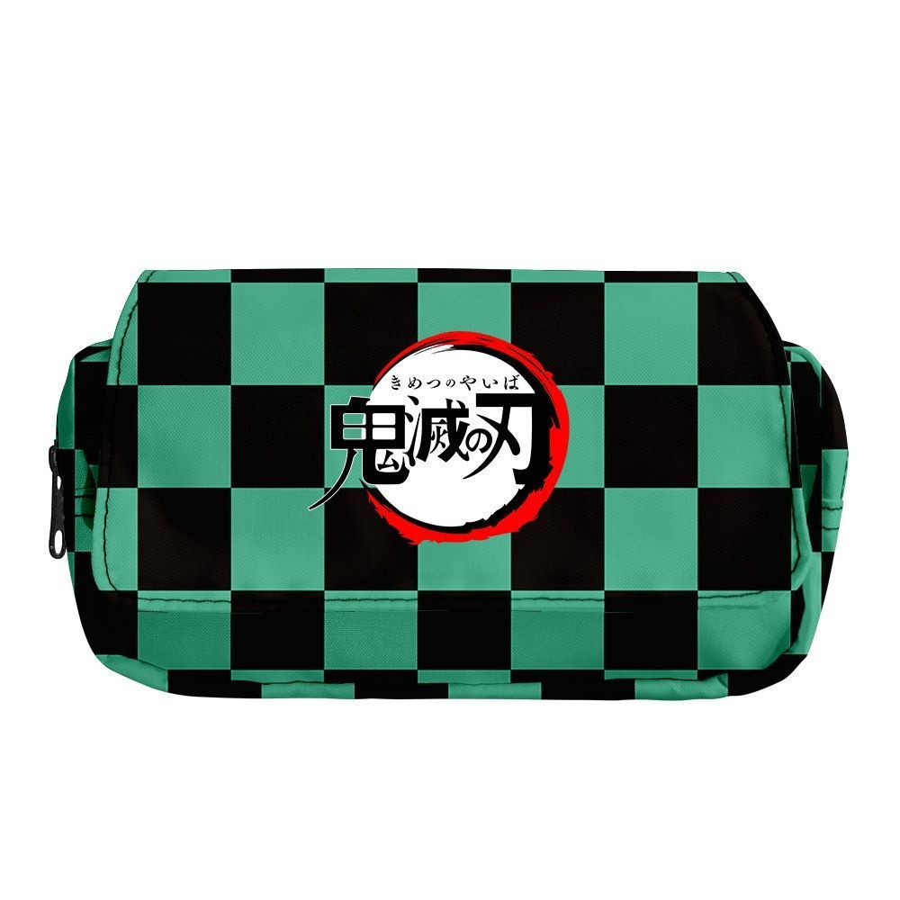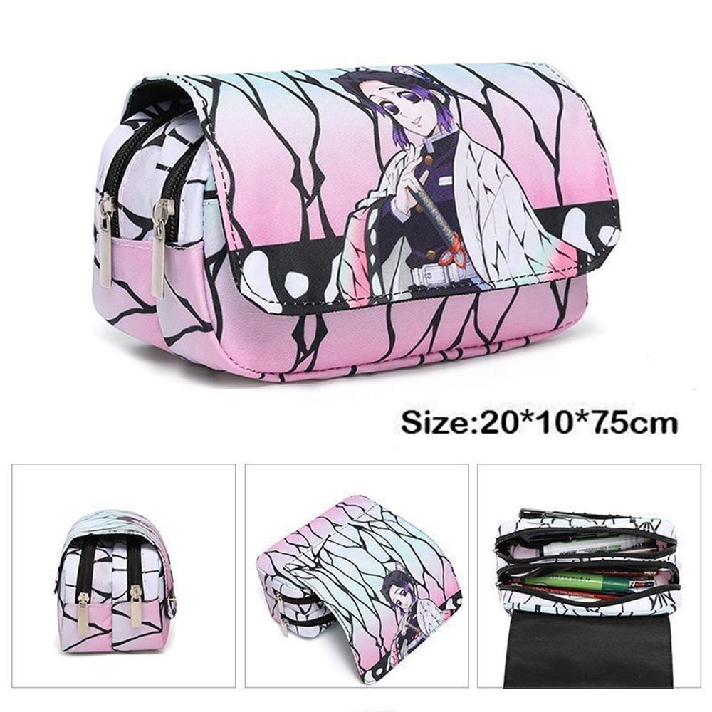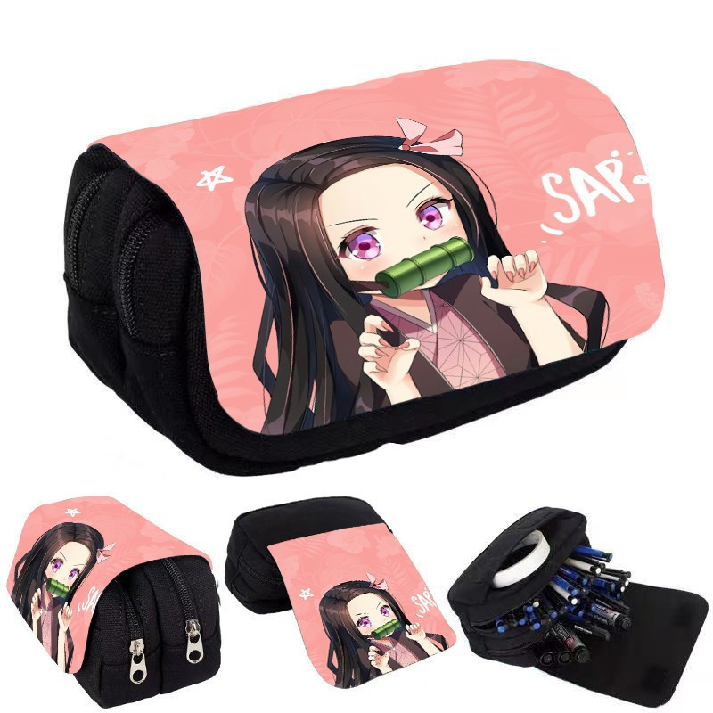 Estojo de Lápis de Grande Capacidade com Camada Dupla Demon Slayer Bolsa de Lona com Zíper Suprimentos para Escritório e