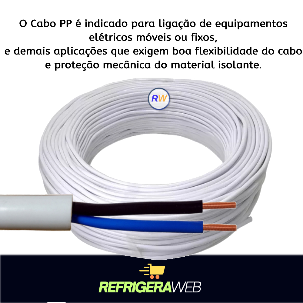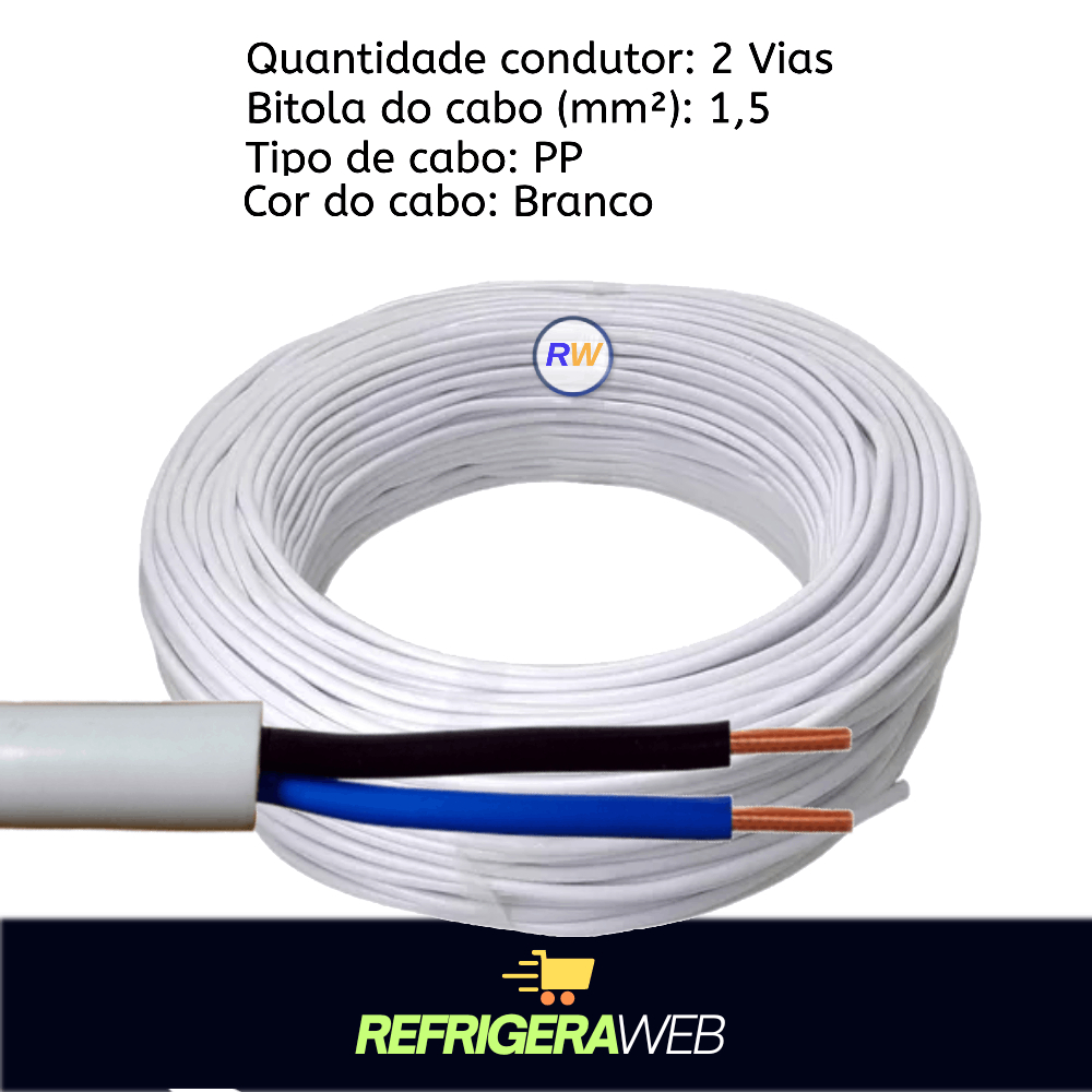 Cabo Comando Pp 2 Vias 1,5mm Rolo Branco Ou Preto
