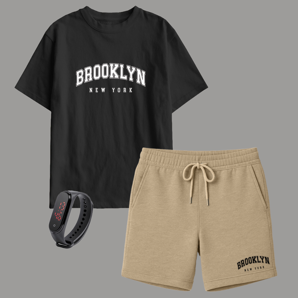 Kit Camiseta Algodão Infantil e Short Moletinho Várias Cores + Brinde