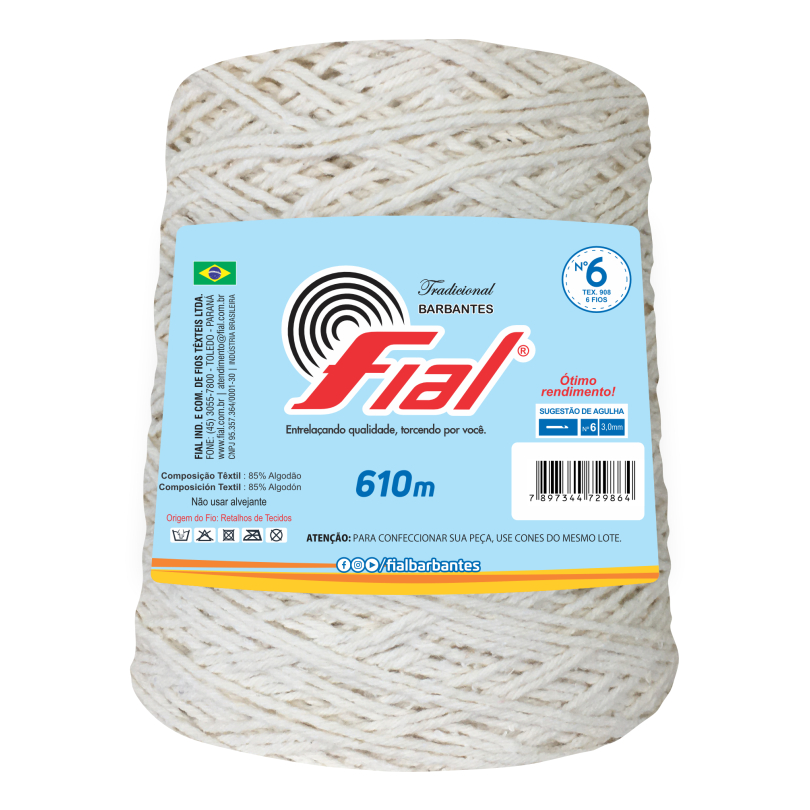 Barbante Fial N°6 Colorido 600g para Crochê e Tricô Macio