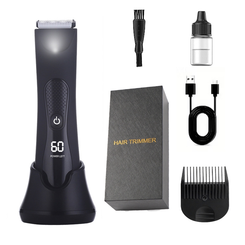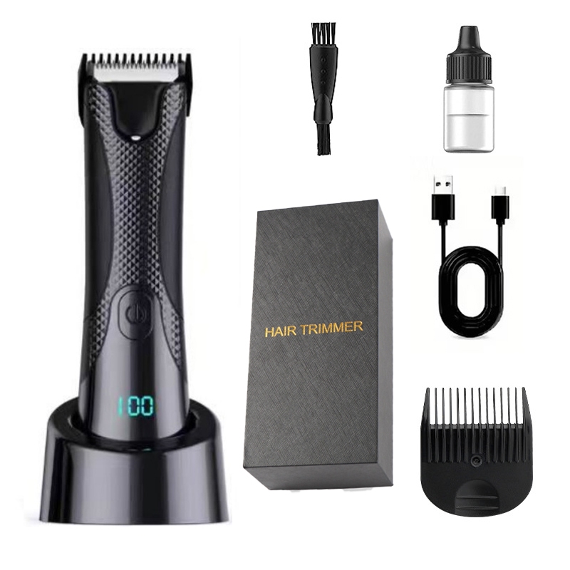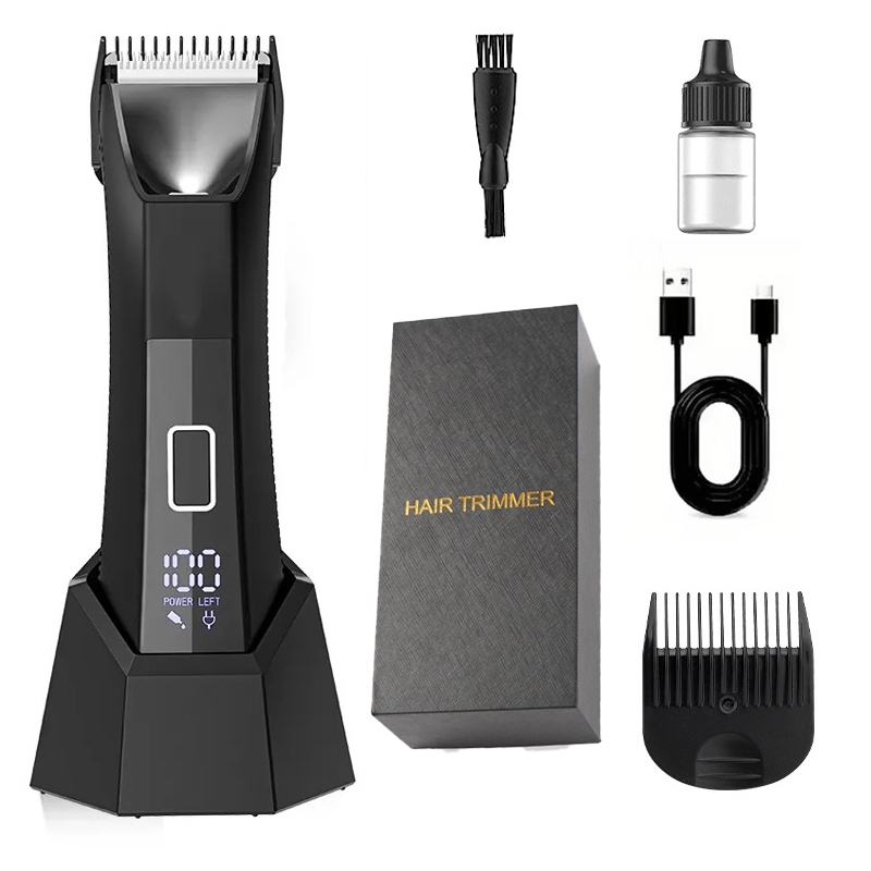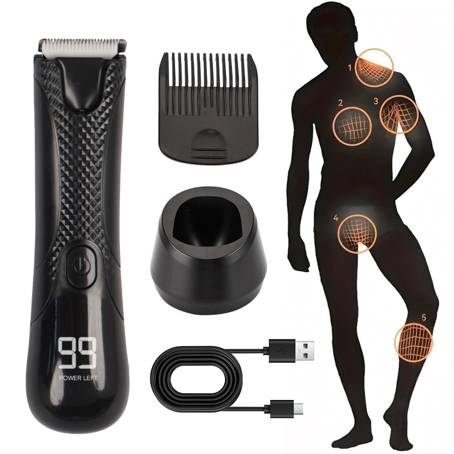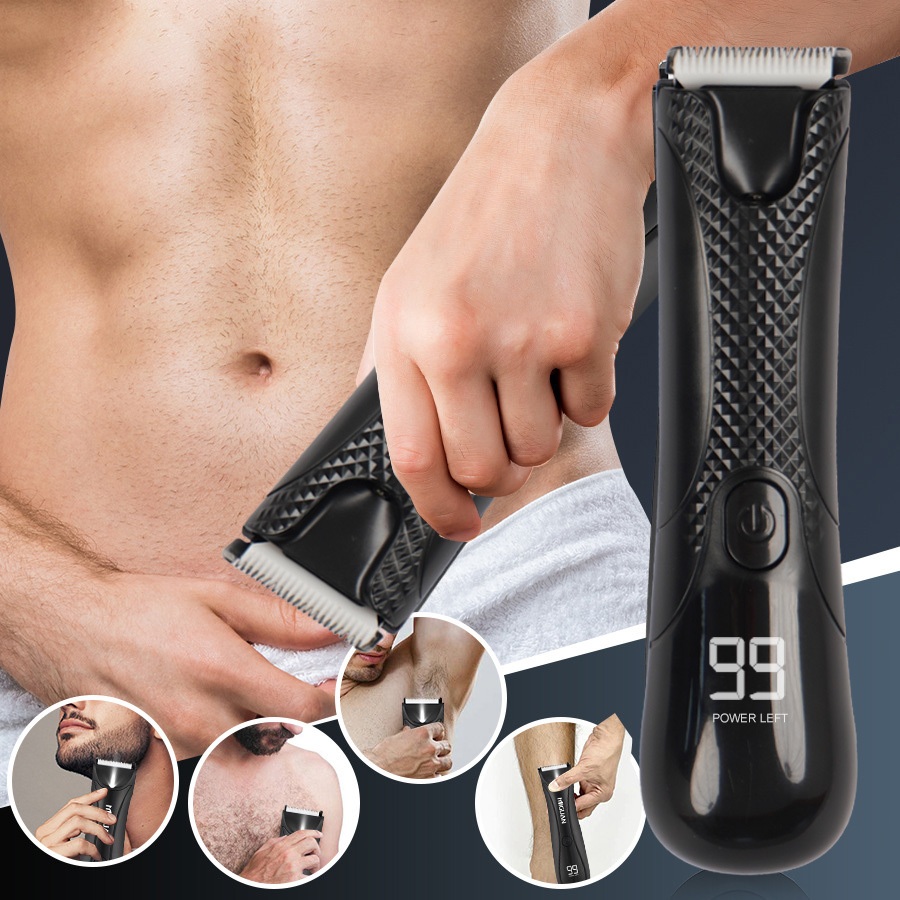 Aparador Íntimo Masculino Elétrico à Prova d’Água – Visor LED/LCD, Recarregável USB, Aparador Corporal Multifunção