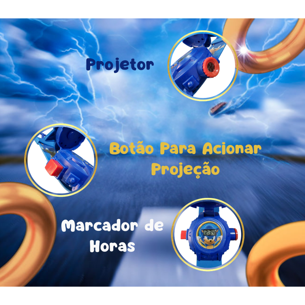Relógio Sonic Projetor De Imagens Infantil Criança Presente