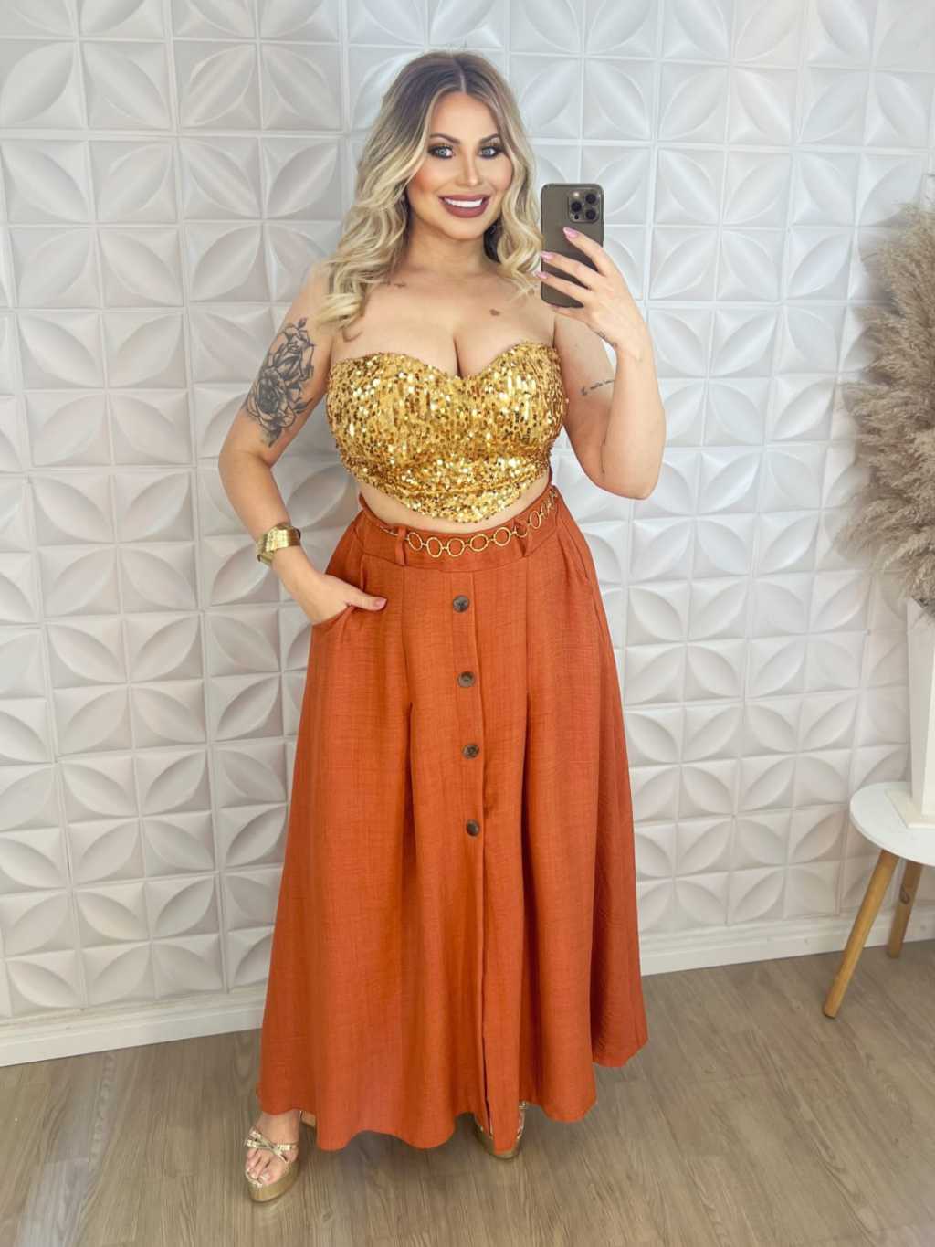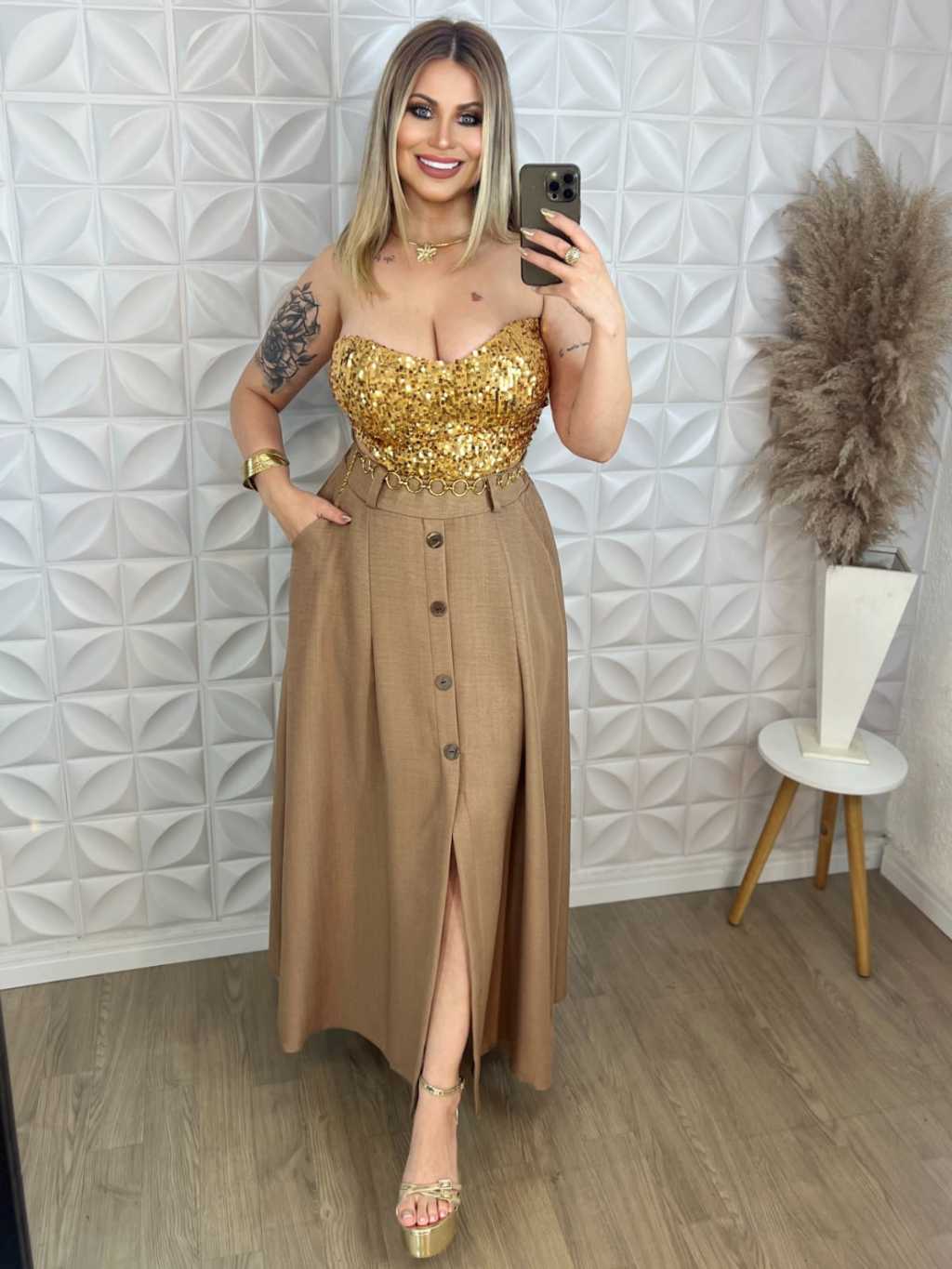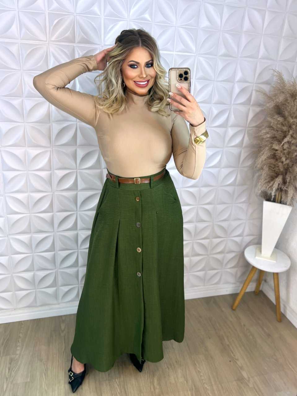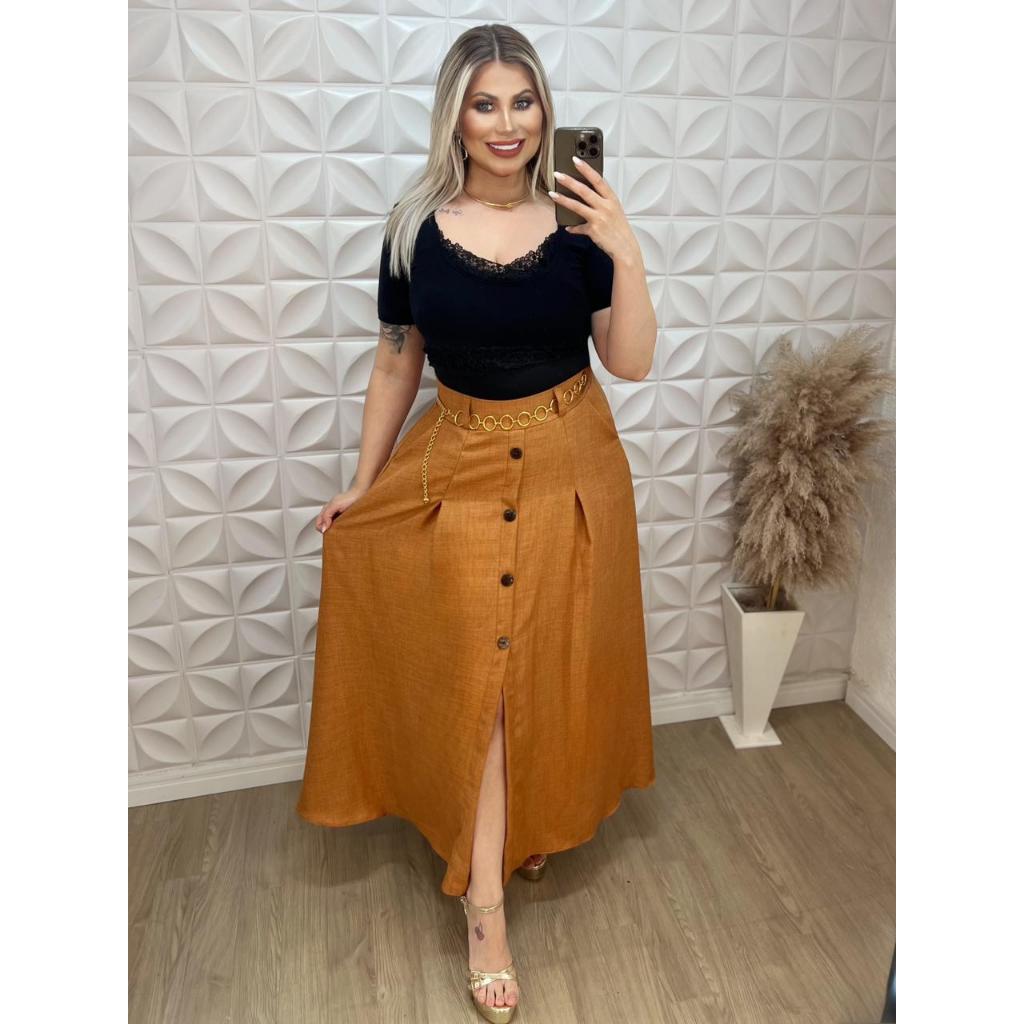 Saia Longa com Botões na Frente Moda Evangelica