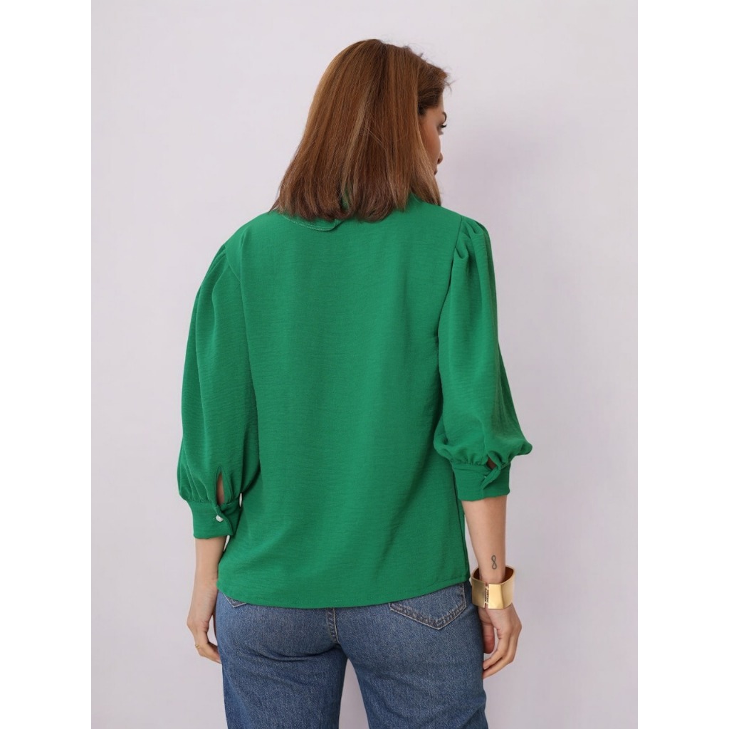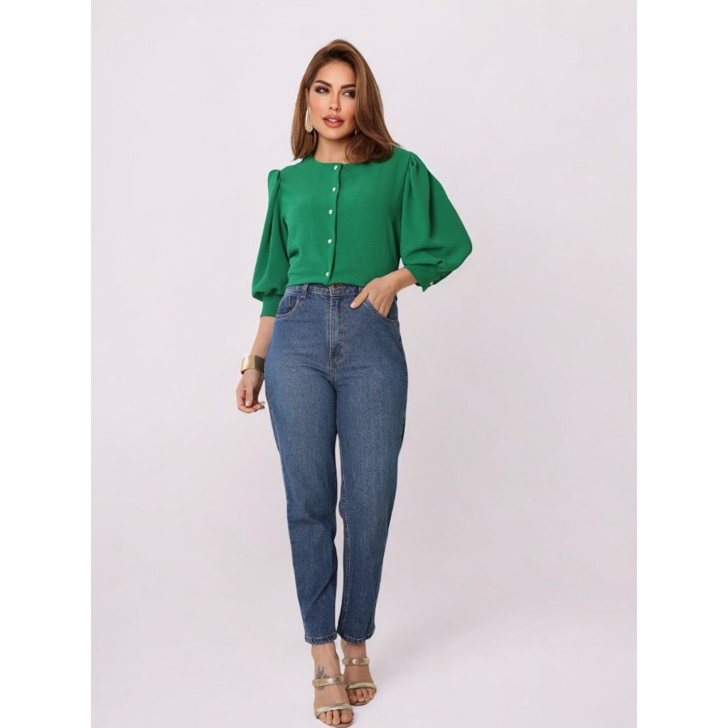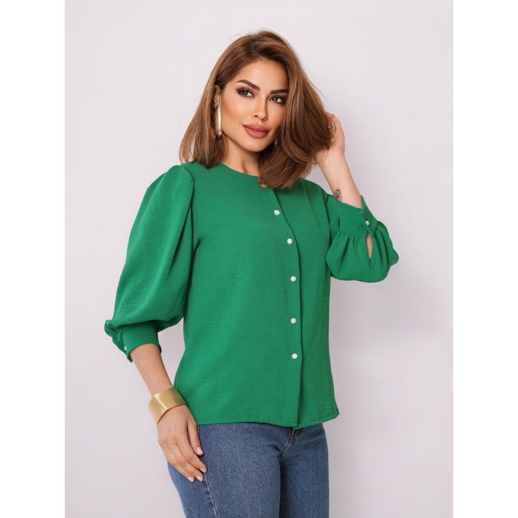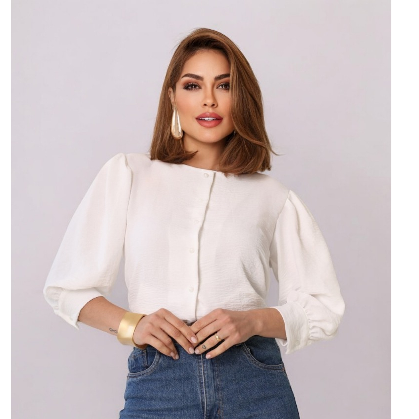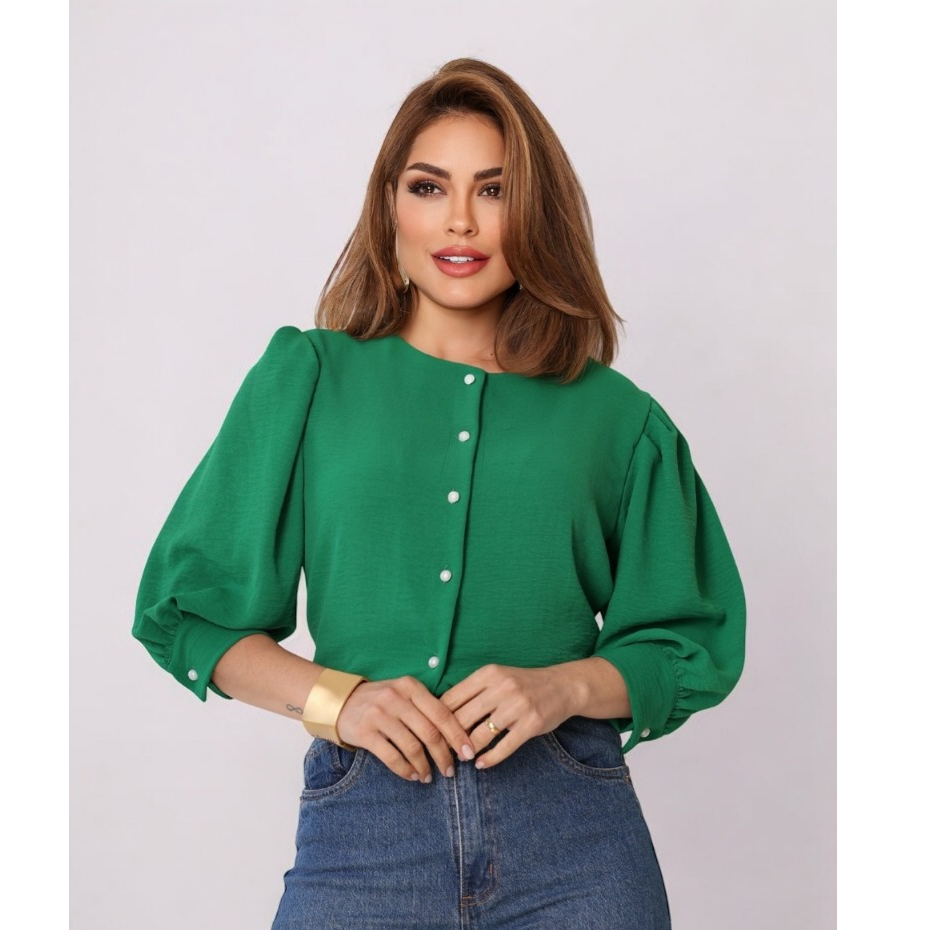 Smile Fashion camisa feminina manga 3/4 com botao abrir tecido duna