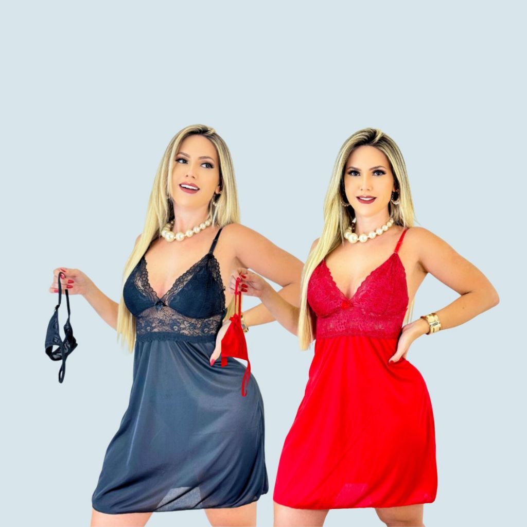 Kit Com 2 Camisolas e Calcinha fio - Renda Sensual Pijama