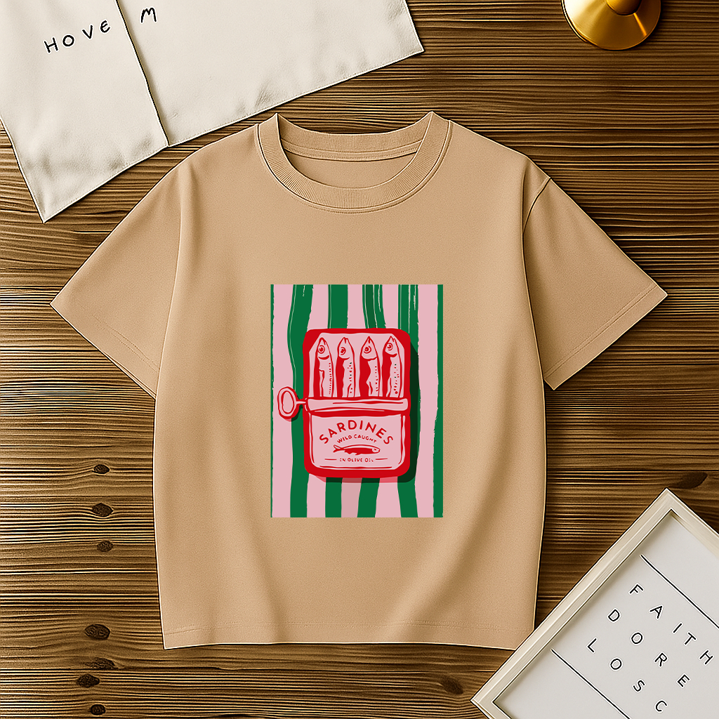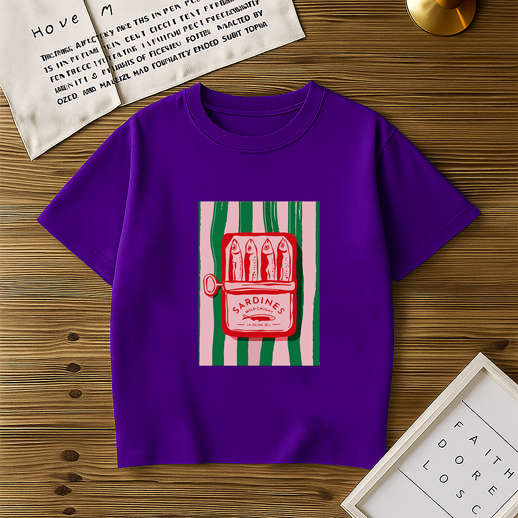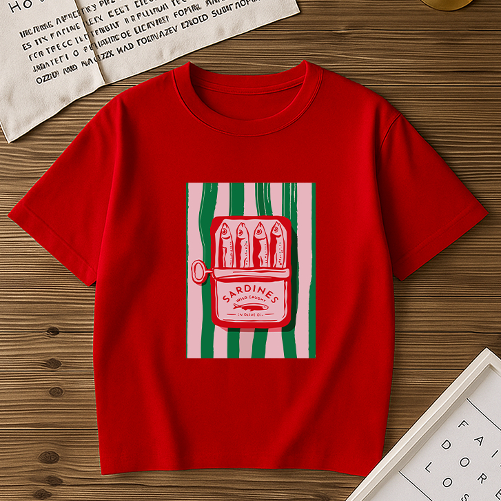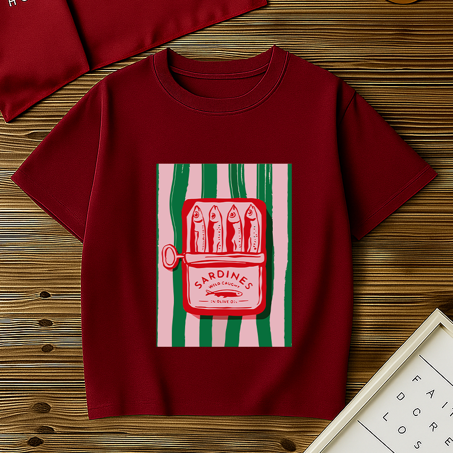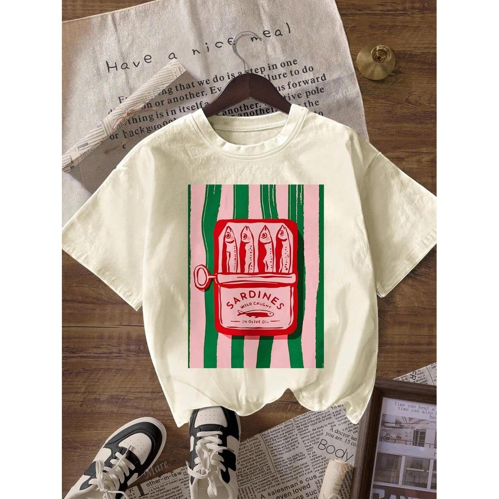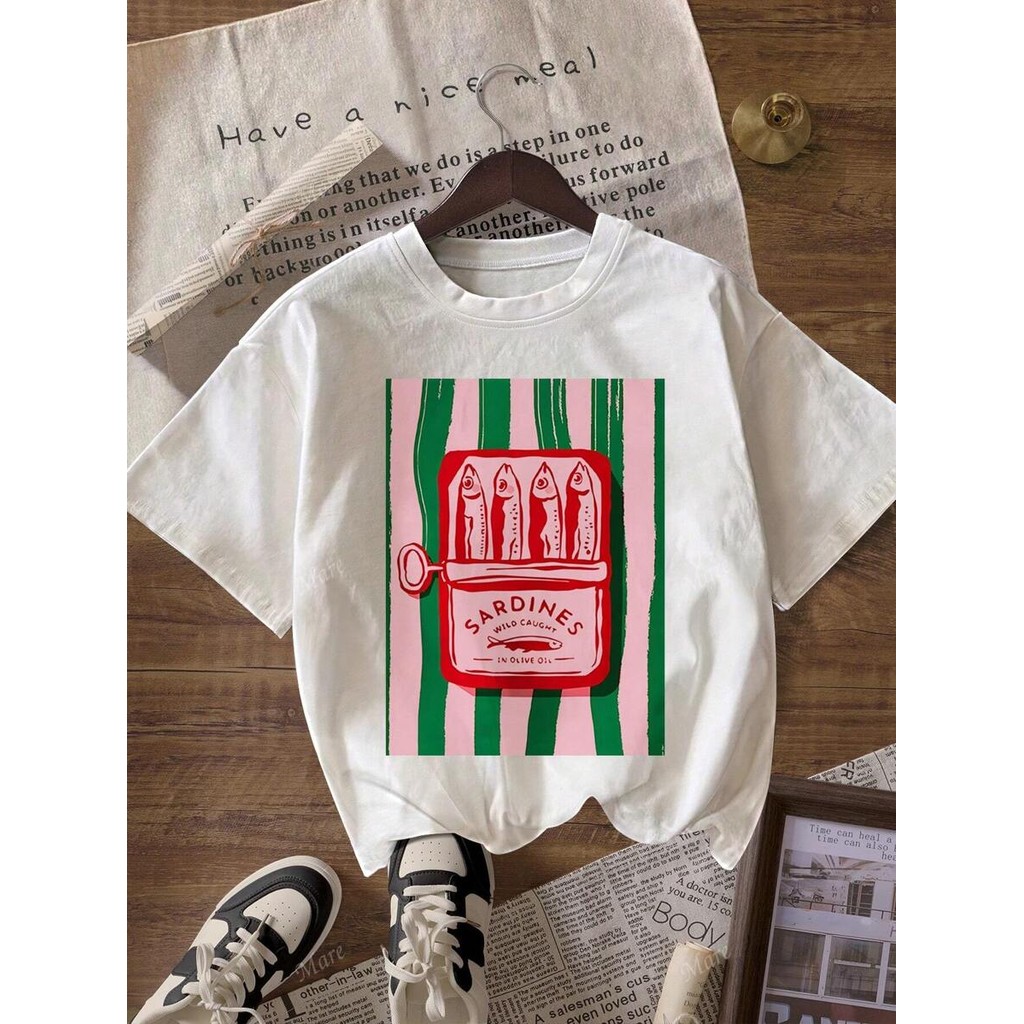 Blusa Básica Feminina Lata Sardinha T-Shirt Gola Redonda 100% Algodão Tendência