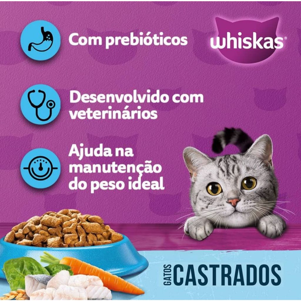 Ração Whiskas gatos castrados peixe 10kg para gatos exigentes