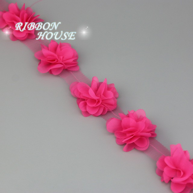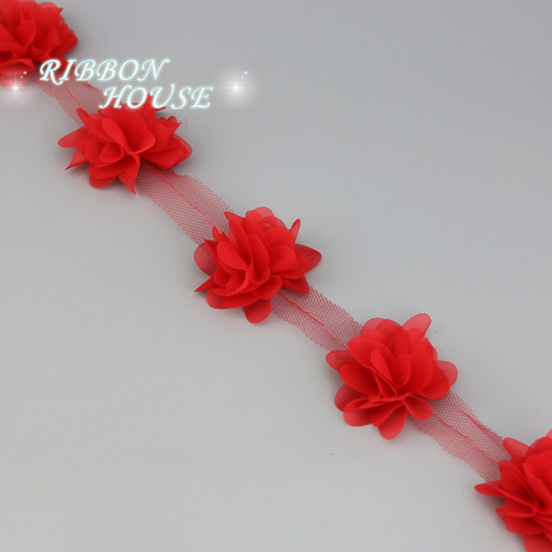 (5yards / Lot) Pétala Chiffon Rendas Tecido Decoração Amor Presente Ribons Artesanato 50mm Largura