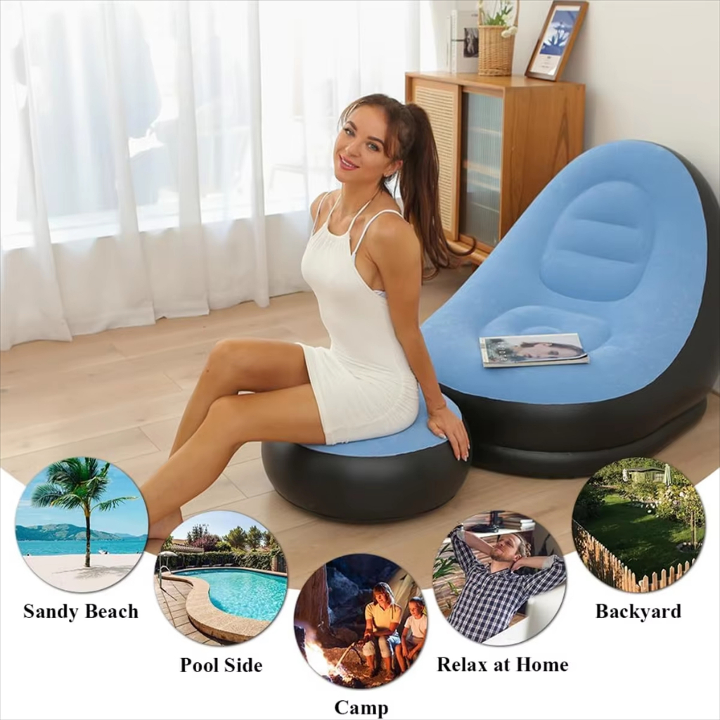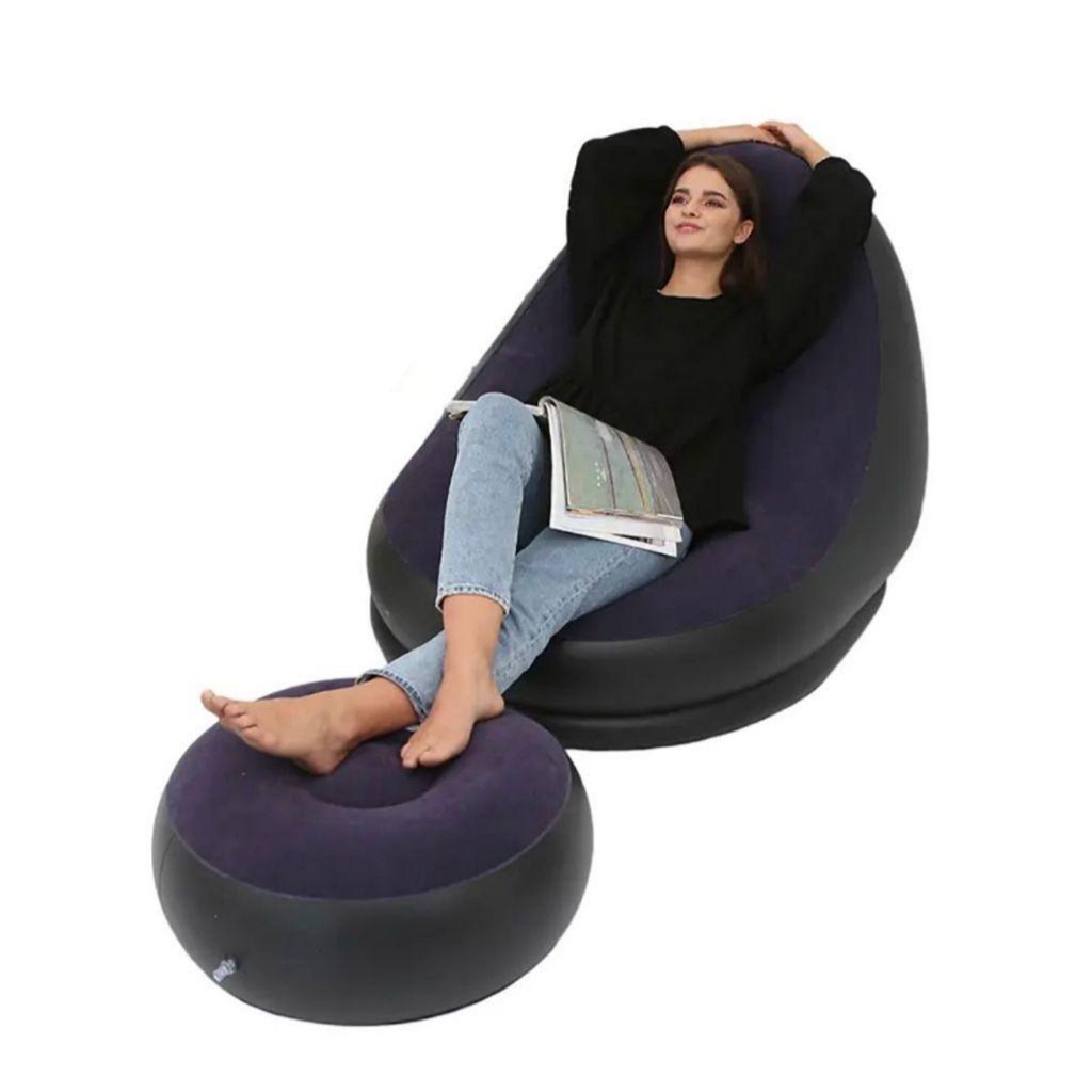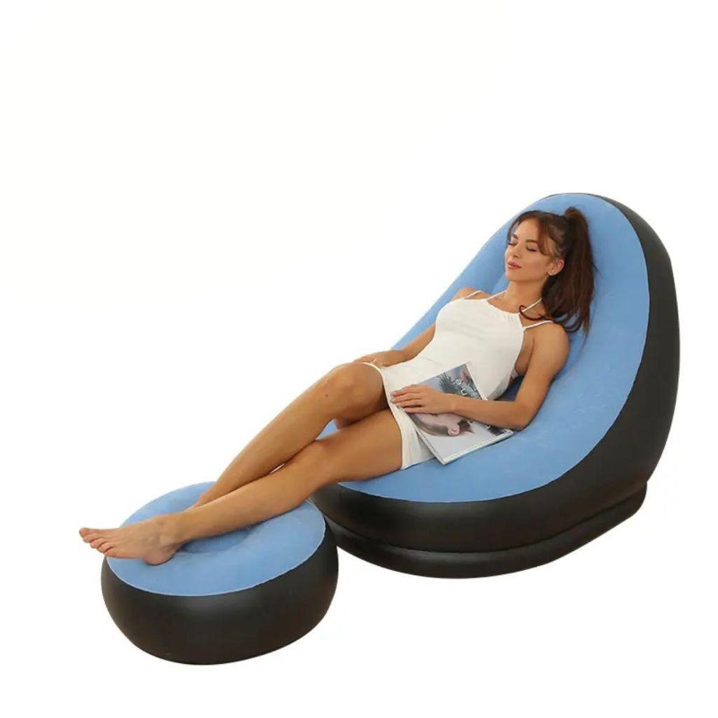 Conjunto Poltrona e Puff Inflável Ultra Lounge Portátil Descanso Preguiçoso Sofá Poltrona CASA BEAUTY