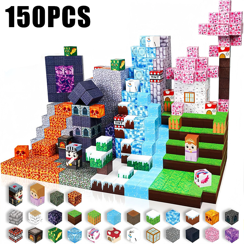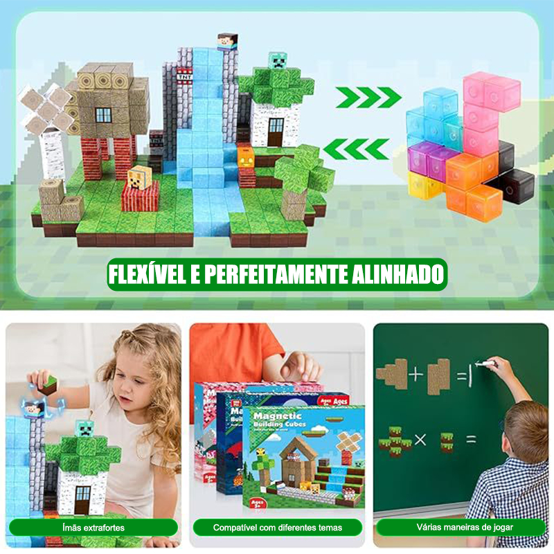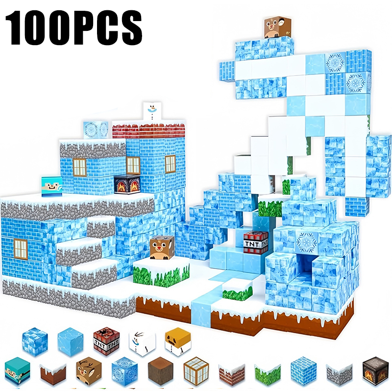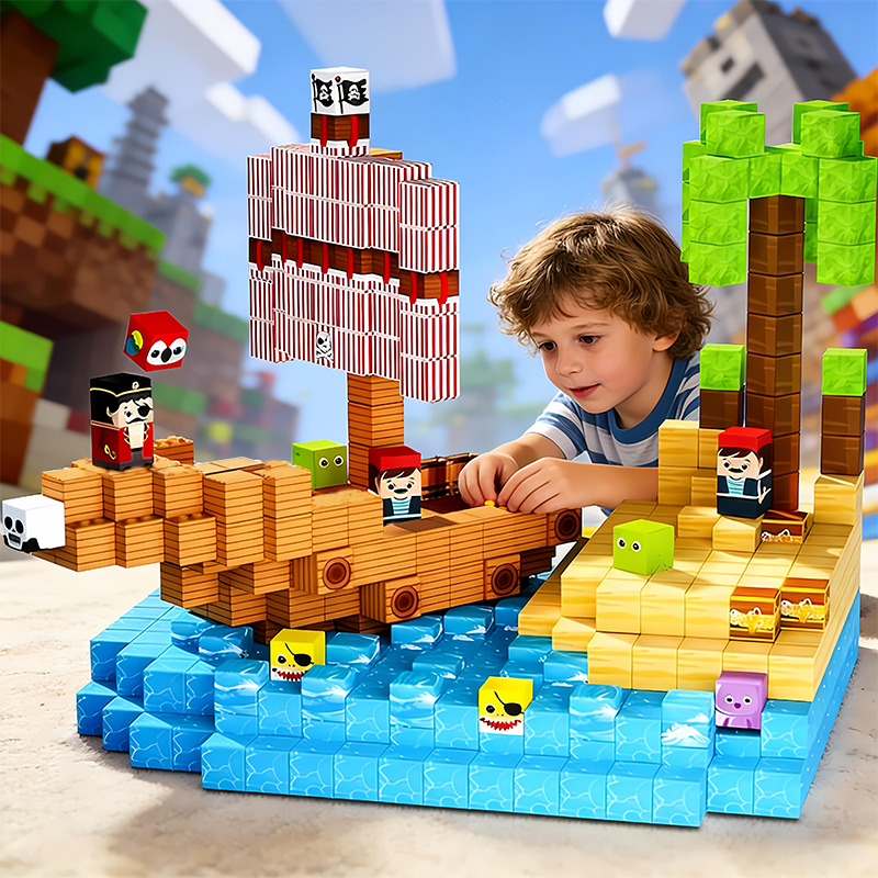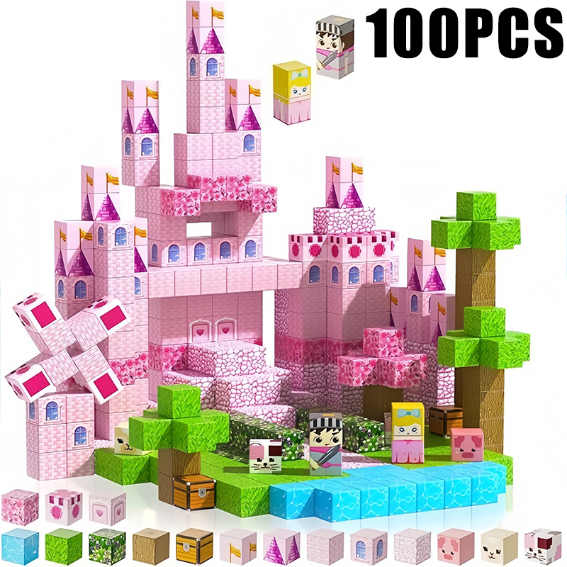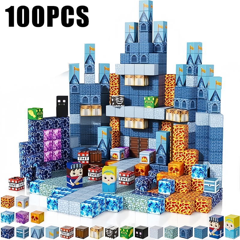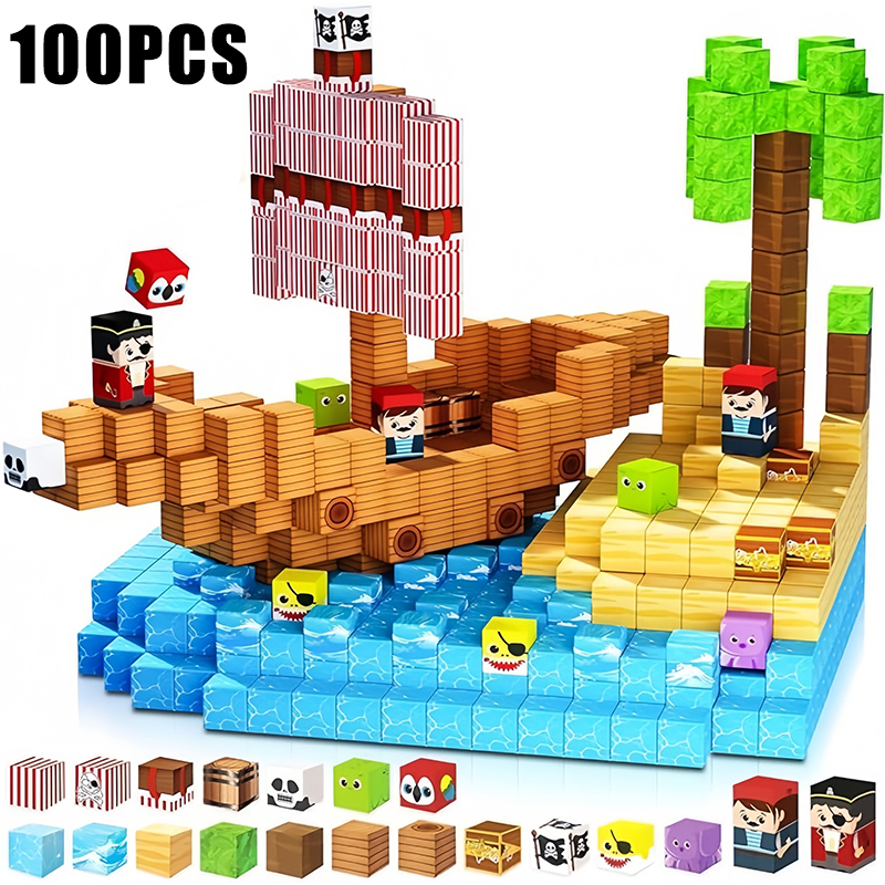 Blocos Magnéticos 100 Peças Montessori STEM–Cubos de Construção Pirata, Educativo para Crianças 3 a 10 Anos-CASA BEAUTY