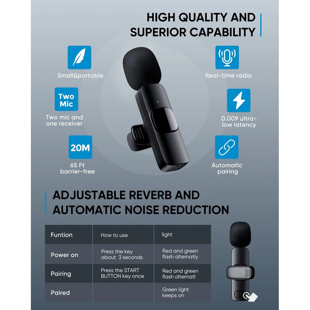 Microfone de Lapela K9 Vlog Sem Fio Alta Definição Compatível IPhone e TIPO C