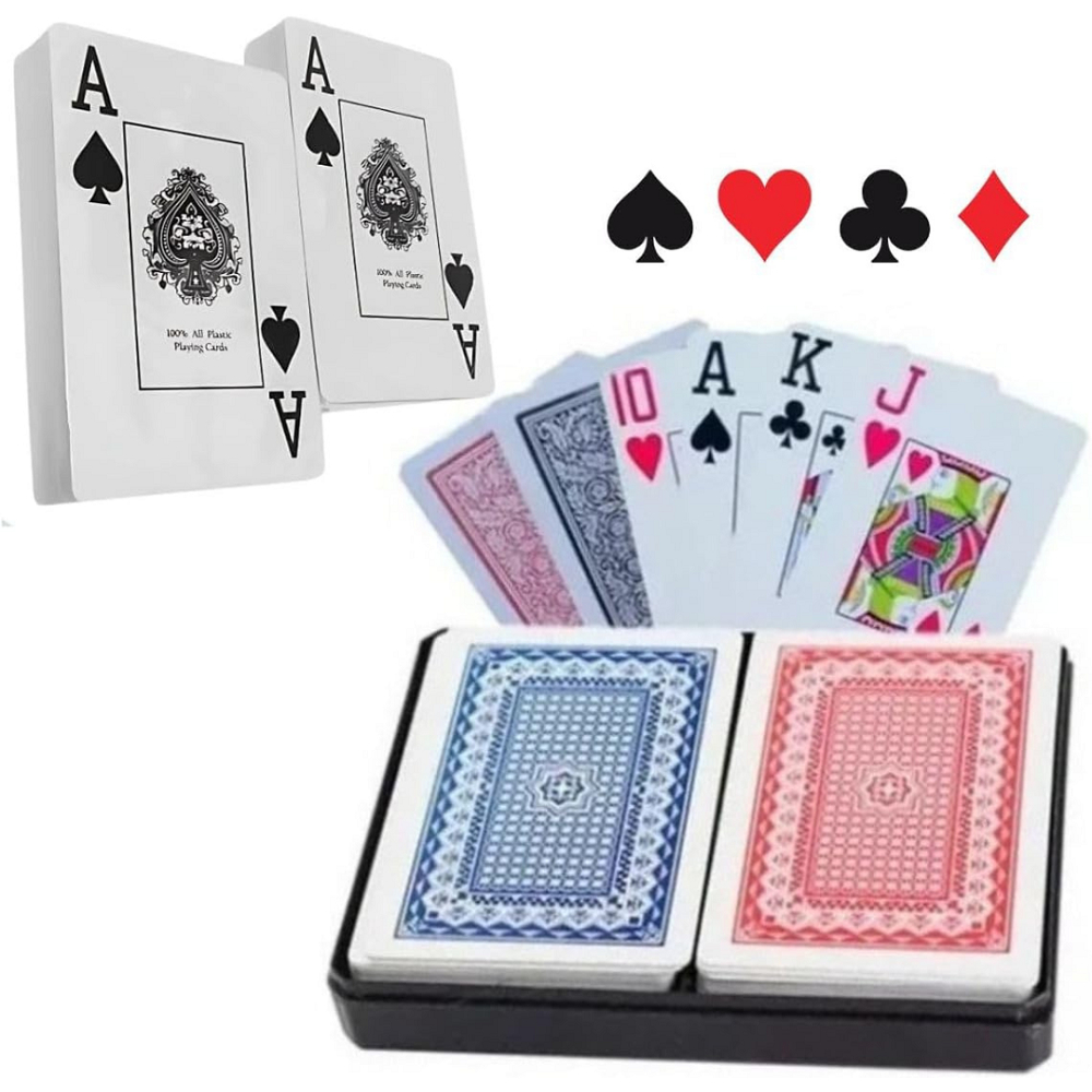 Baralho Tradicional 100% Plástico PVC 108 Cartas Jogo Com Estojo Acrílico A Prova D'Água
