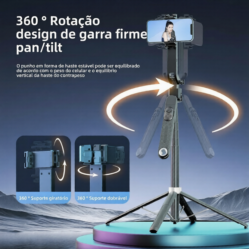 Estabilizador Gimbal Celular Tripé C/ Rastreamento Facial Rotativo Bluetooth Profissional