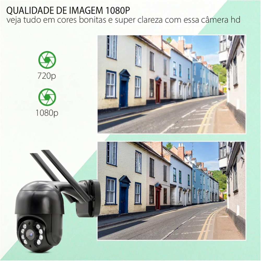 Câmera de Segurança WiFi 1080p A8 Preta IP66 à Prova d’Água Infravermelho Externa