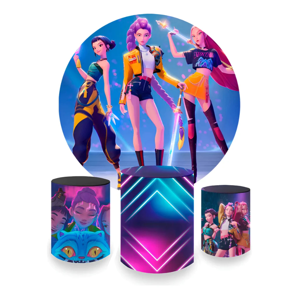 Painel Redondo Trio Cilindro Romano 2x1 Guerreiras K-pop
