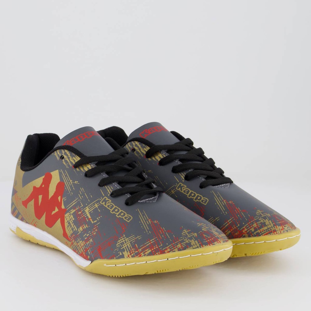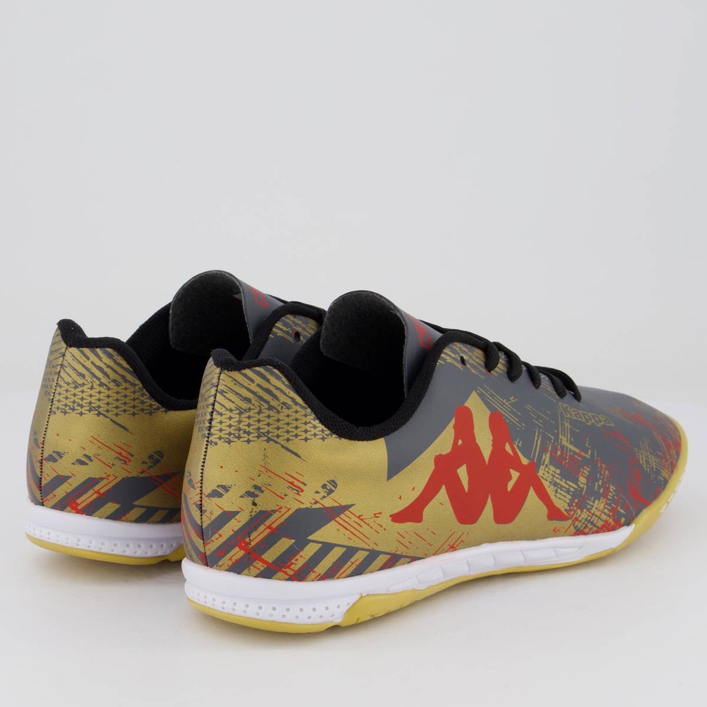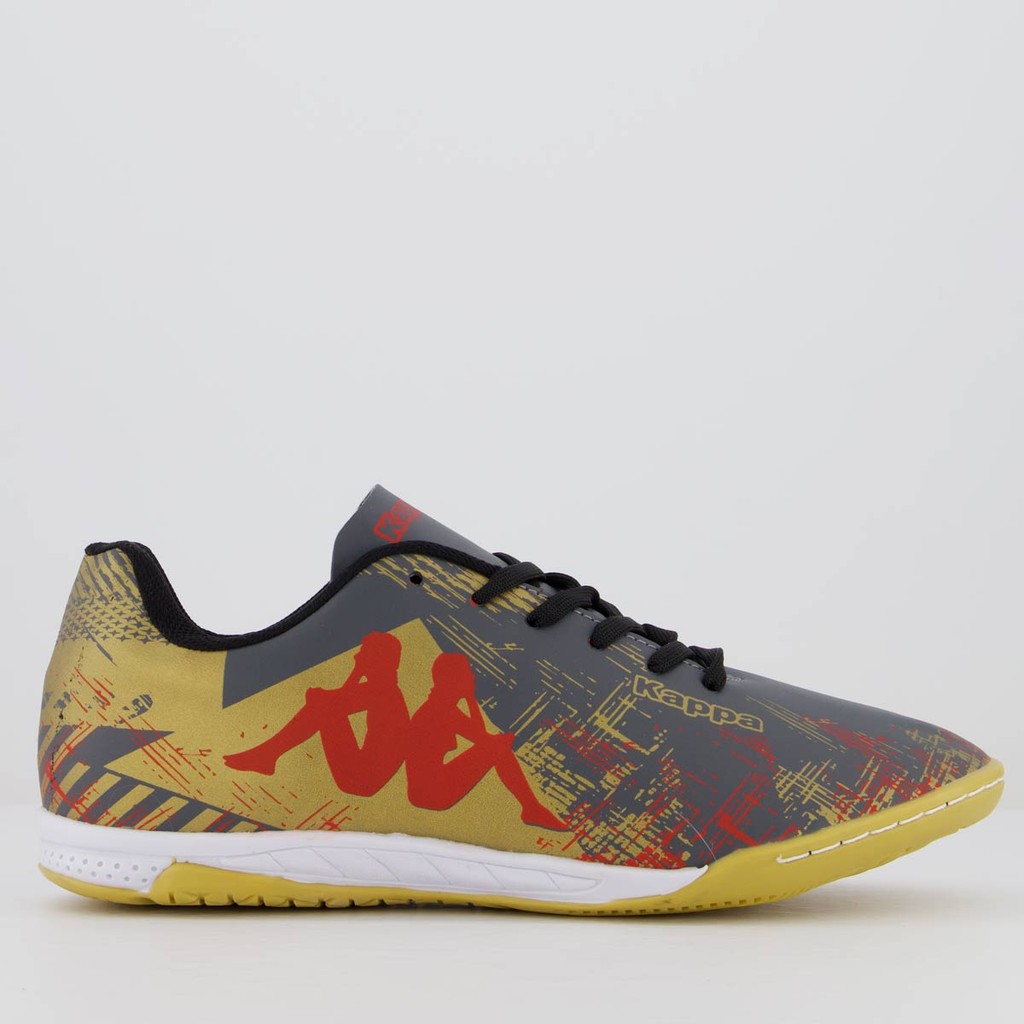 Chuteira Kappa Seattle Futsal Cinza e Dourada