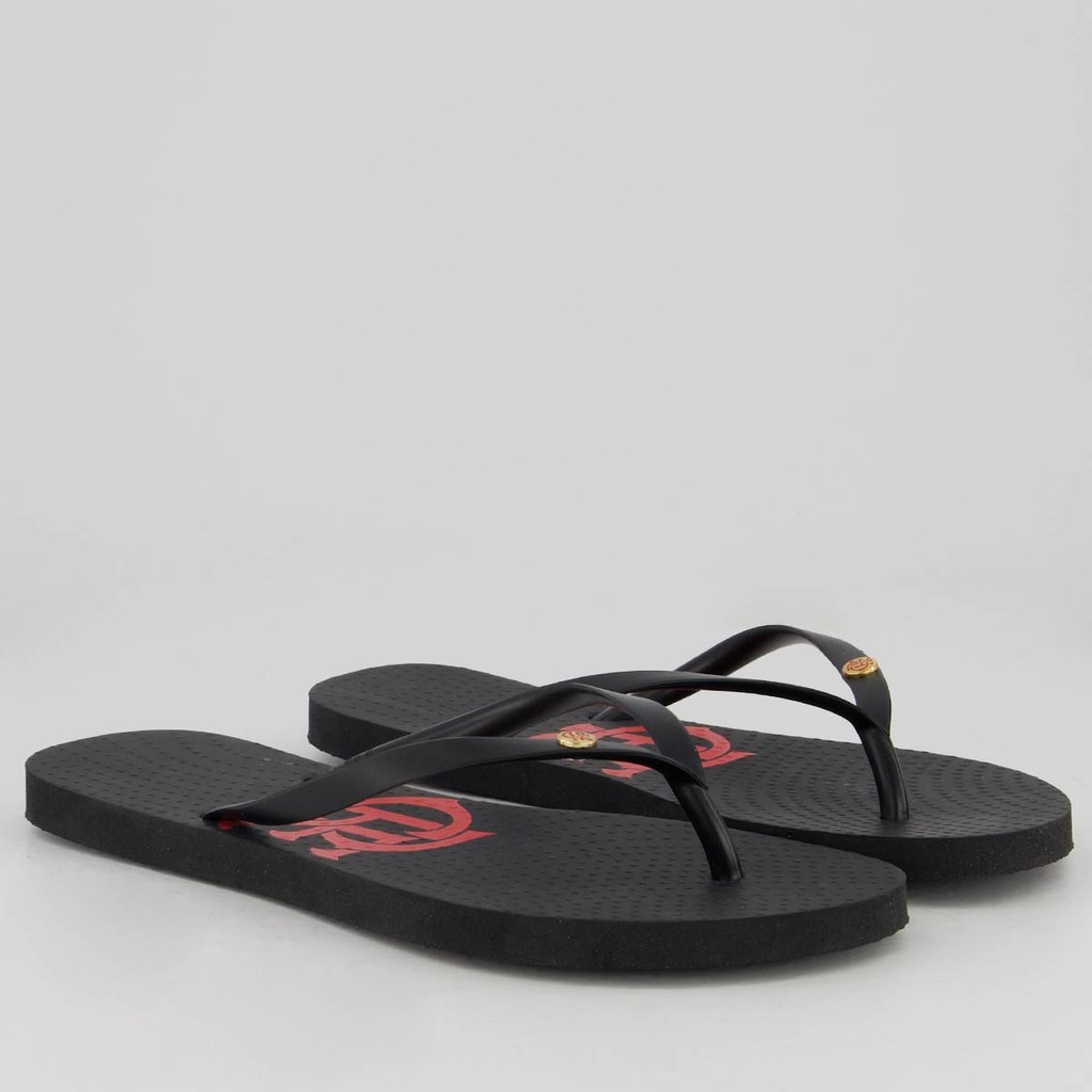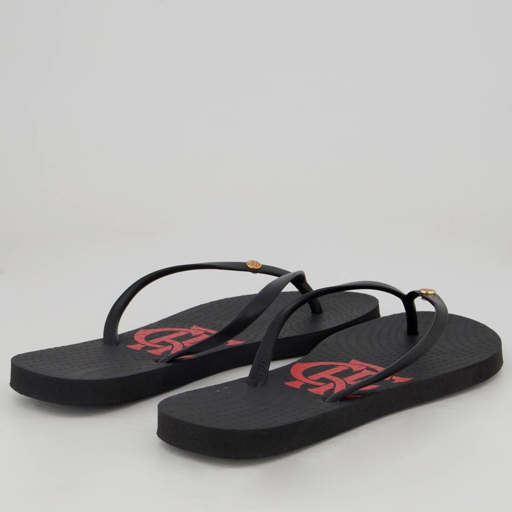 Chinelo Flamengo Basic Escudo Feminino Preto e Vermelho