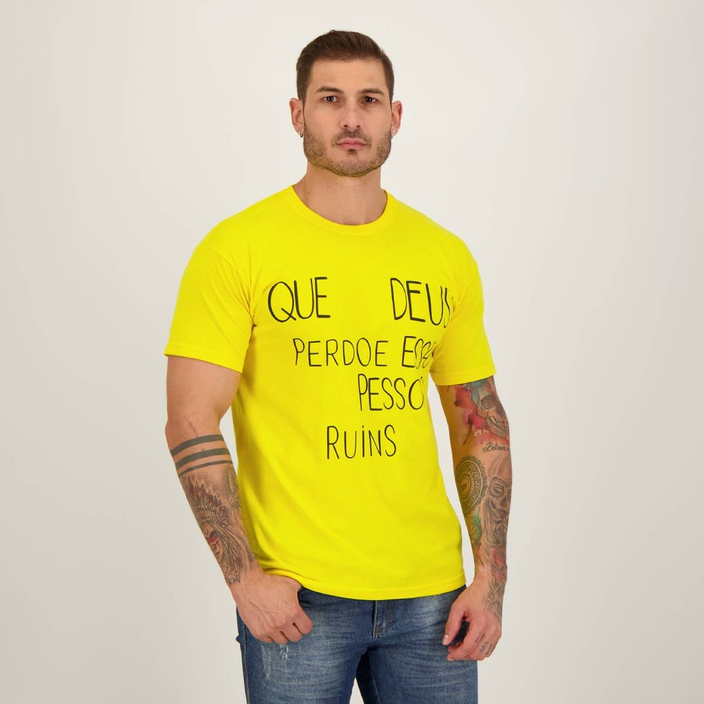 Camiseta Que Deus Perdoe Essas Pessoas Ruins Amarela